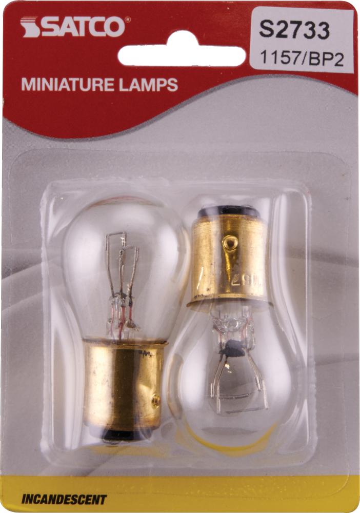 Satco's S2733 26.88 or 8.26 watt S8 miniature bulb is small enough to fit in tight spaces. The clear, incandescent bulb features a bayonet double contact base. This lamp is rated for 1200 hours of illumination without drawing too much energy.