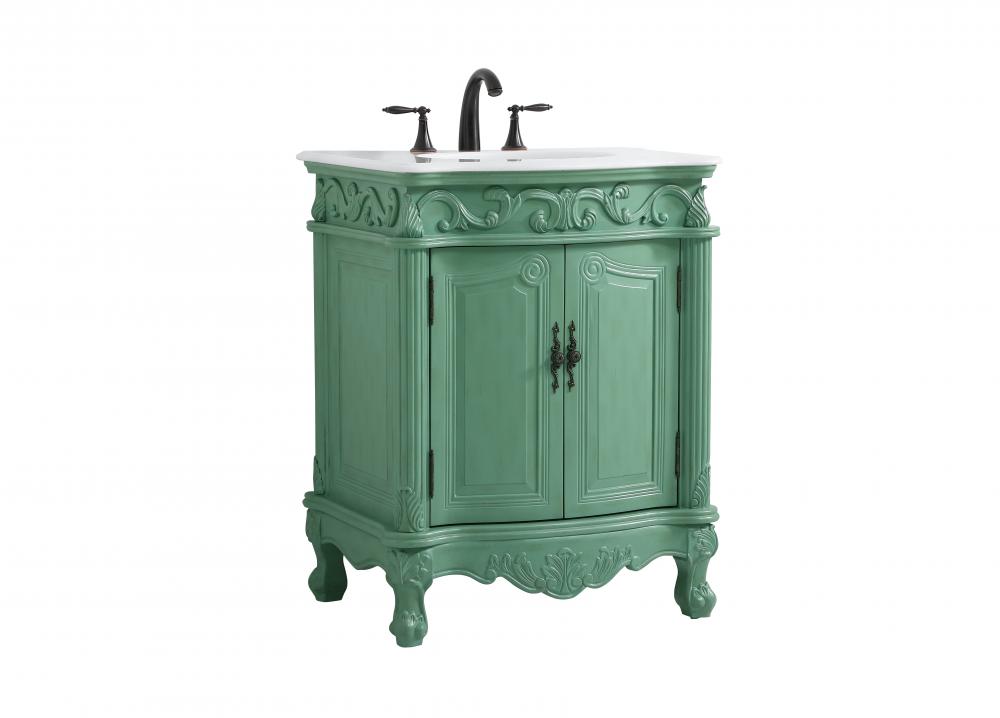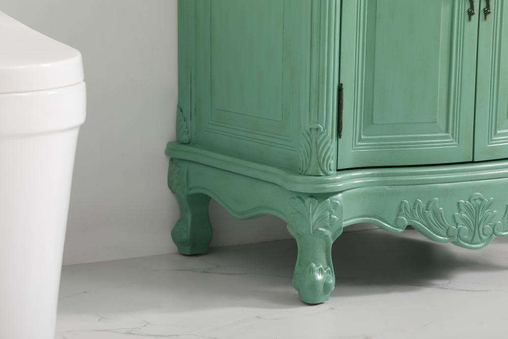 27 inch Single Bathroom vanity in vintage mint with ivory white engineered marble