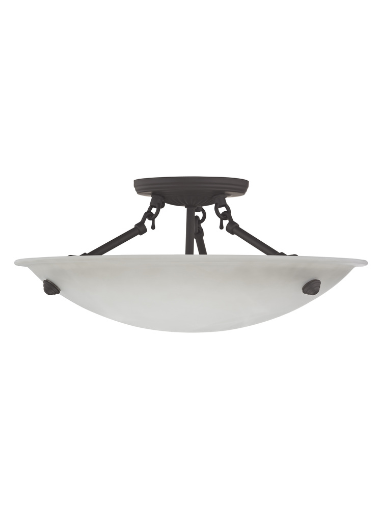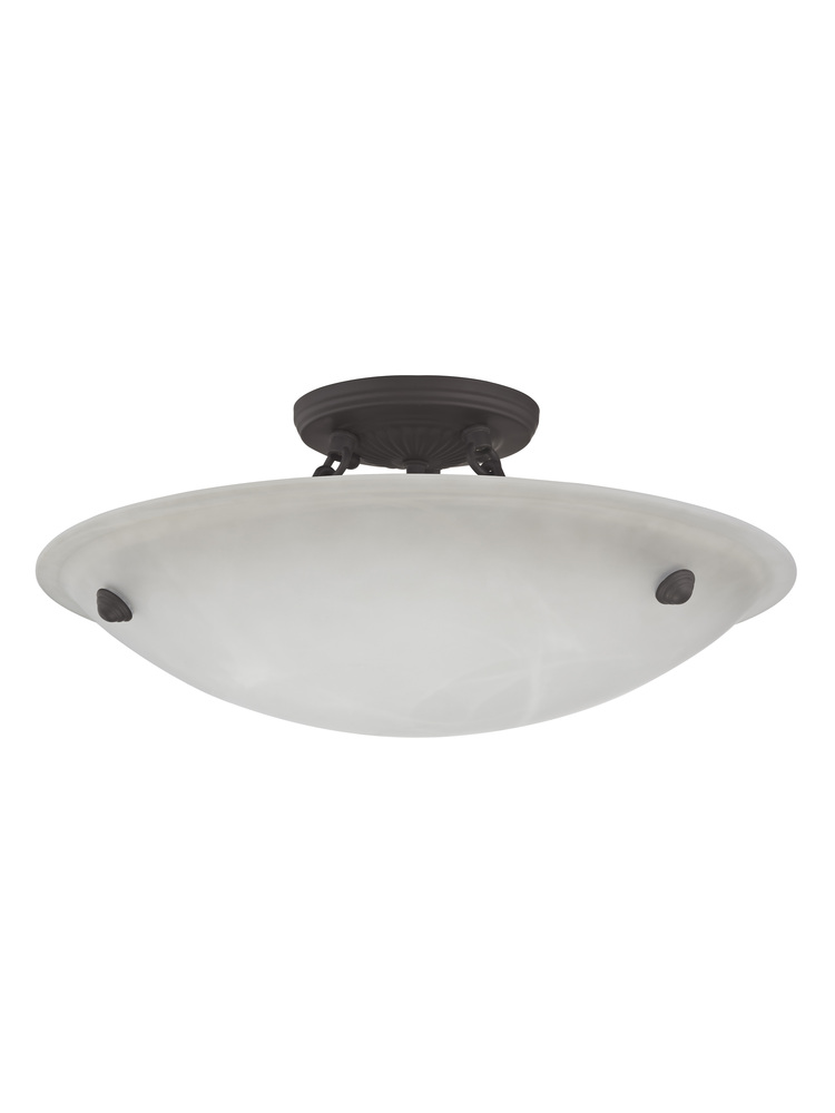 This Semi Flush Features Contour Lines And A Bowed Profile. With An Understated Design, This Piece Is Perfect For Any Space In Your Home. Featuring A Honey Alabaster Glass And Bronze Finish, This Fixture Will Effortlessly Blend With Your Existing Décor.