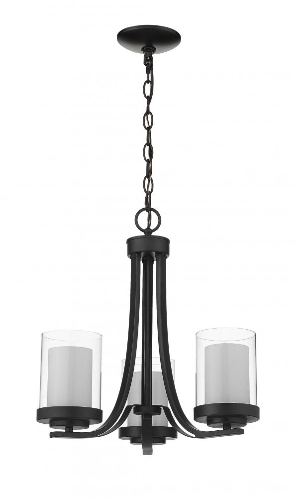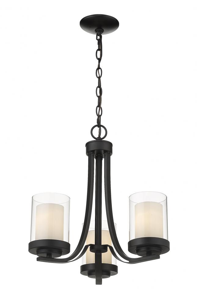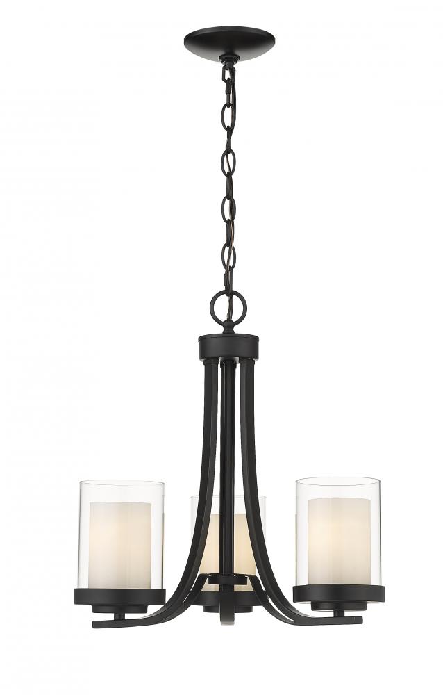 Give your dining room or great room a chic, sophisticated update. This beautiful, matte black chandelier features three glowing bulbs beneath three delicate, glass shades that are matte opal on the inside and clear on the outside. An exquisite lighting option to highlight your refined sense of style.