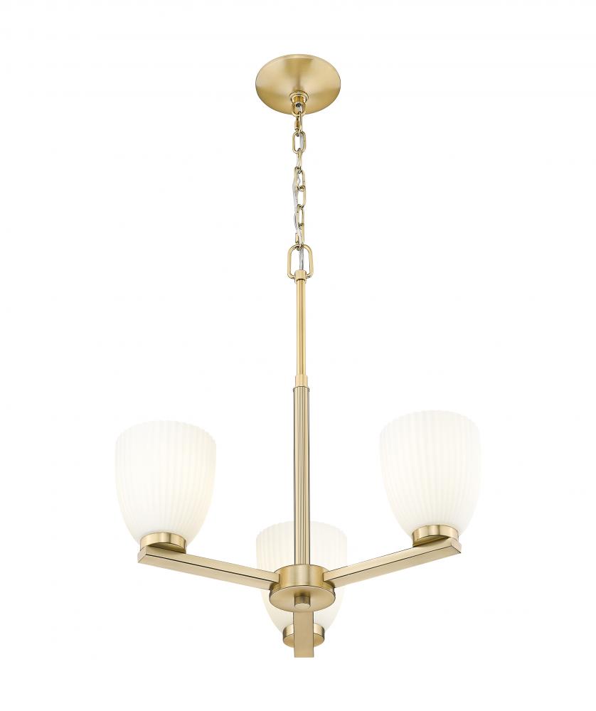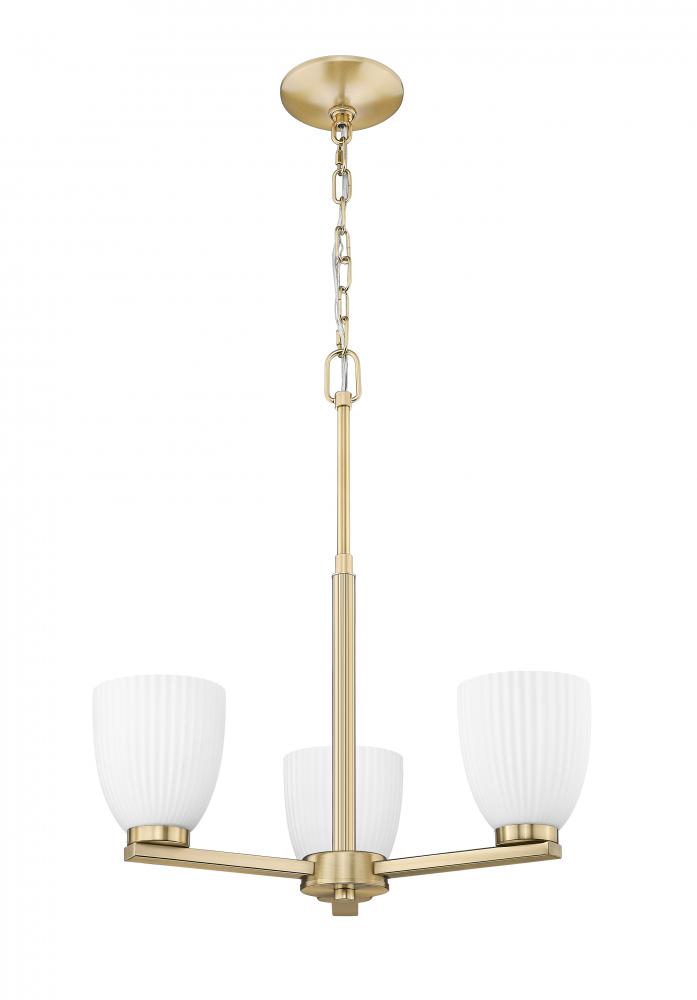 Wrapped in a modern gold finish, this three-light chandelier brings warmth and subtle radiance to overhead lighting. Matte opal glass with gentle ribbing softens each beam, creating a layered, elegant glow. It?s a refined statement piece that floats beautifully in kitchens, dining rooms, or entryways.