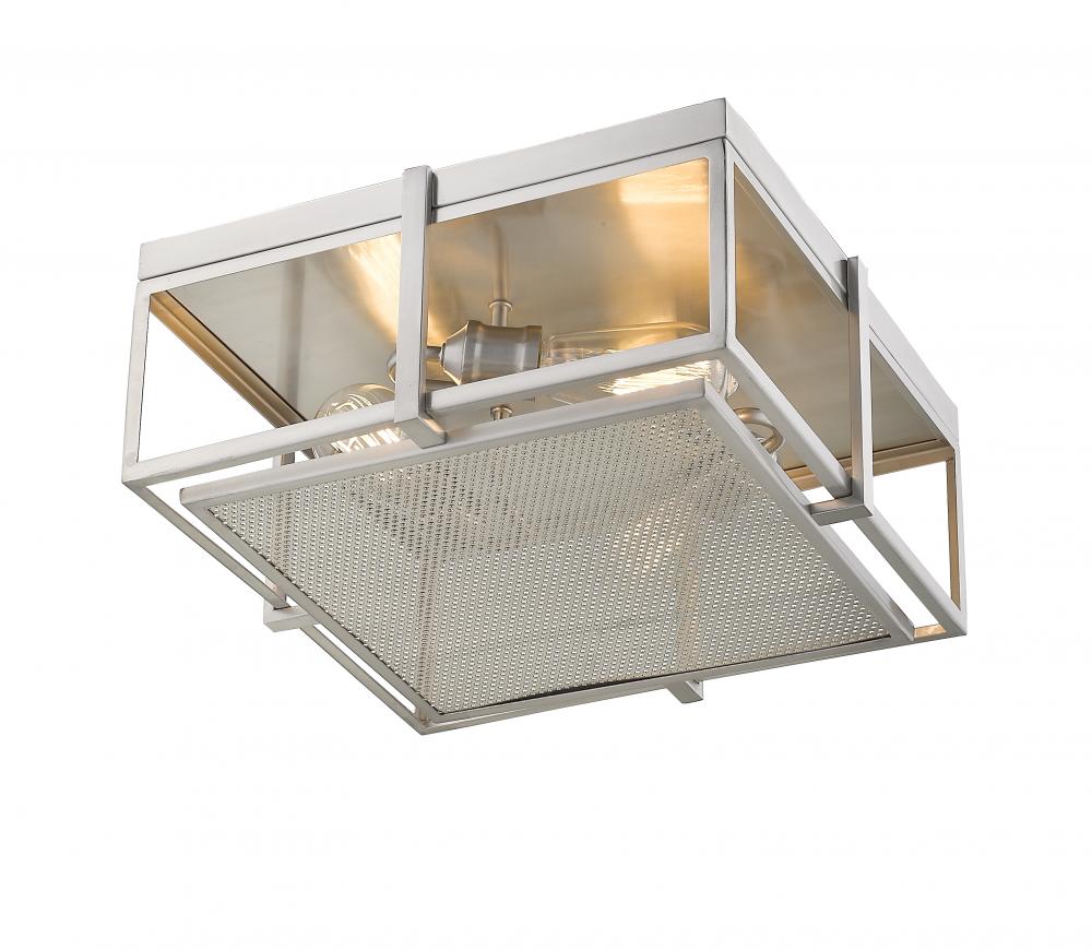 Clean lines and an open geometric silhouette from this three-light ceiling light emit a modern aura. The bright brushed nickel finish highlights the contemporary details.
