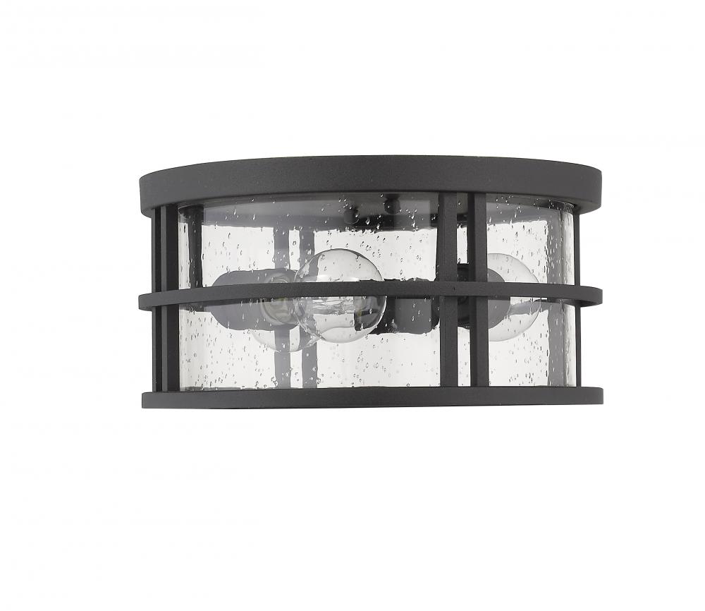 Add structure with the clean lines from this three-light outdoor ceiling light. In a deep black hue, the clean silhouette features rounded features.