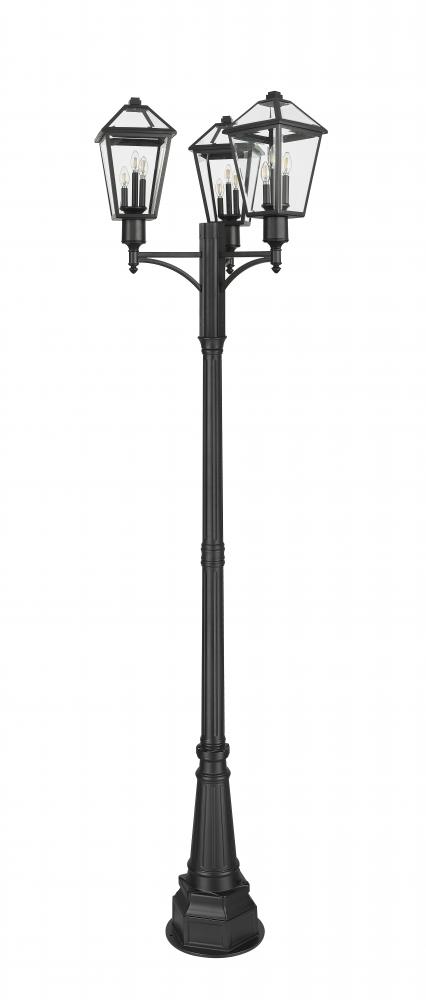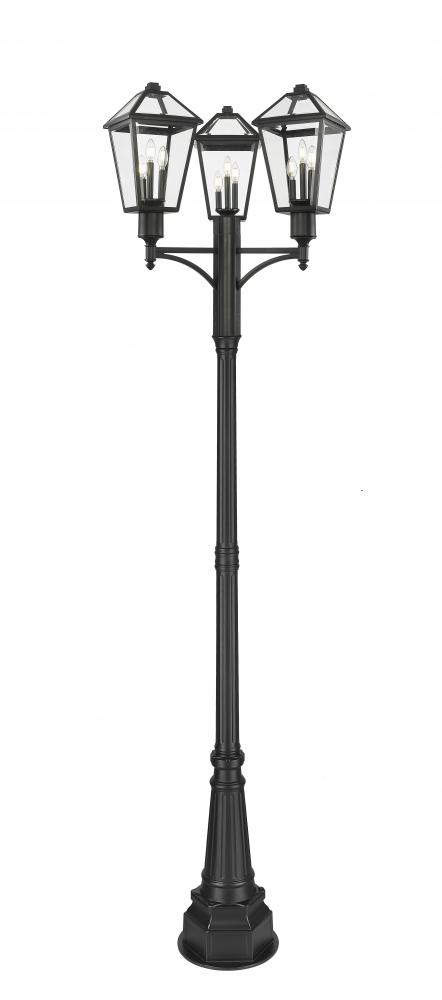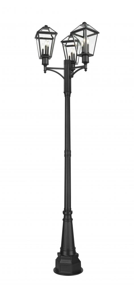 Illuminate an exterior front or back walkway with a classic fixture reflecting a charming village theme. Made from Midnight Black metal and clear beveled glass panels, this three-light outdoor post mount fixture delivers a charming upgrade with industrial-inspired attitude that tops a custom chosen post.