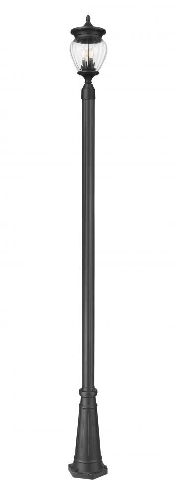 Consider this three-light outdoor post-mounted light to add elegance along with soft illumination in your landscaping. Updating a back or front yard with dimmable lighting, this slender fixture pairs an aluminum post and light frame with a Coastal black paint finish. Ribbed glass creates a teardrop silhouette for its shade, delivering the perfect dose of romantic character to your exterior space.