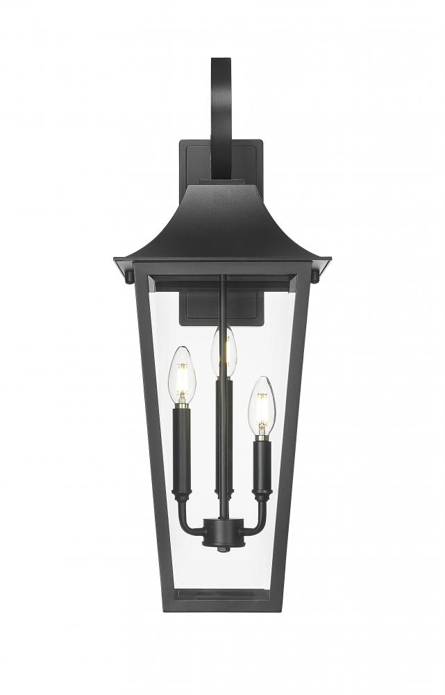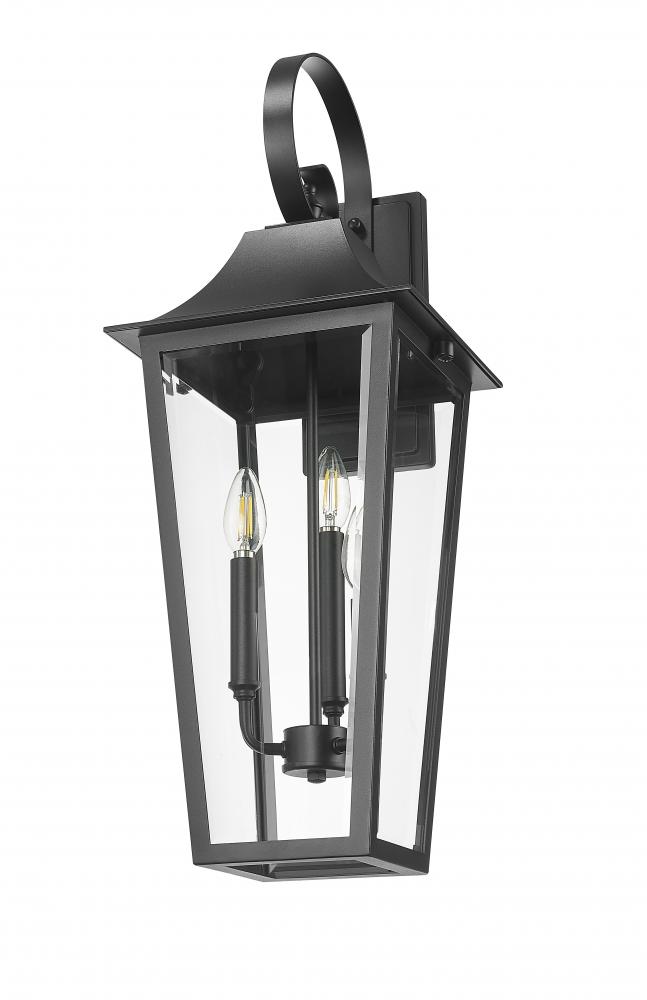 A sleek scroll arm and elongated silhouette become the stylish hallmarks of a traditional three-light outdoor wall light. In durable Coastal black over stainless steel construction, it boasts clear beveled glass panels for bright illumination on a porch or patio. This stylish fixture offers a refined, cohesive look to your exterior.