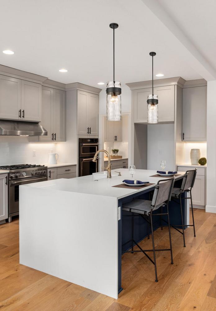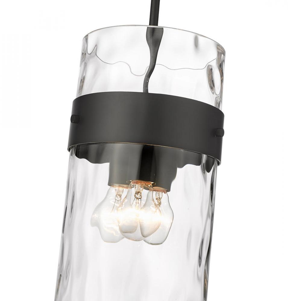 Three cheers for a three-light pendant light that adds chic appeal to kitchens and more. The steel frame boasts a matte black finish while a rippled glass shade offers extra visual interest.