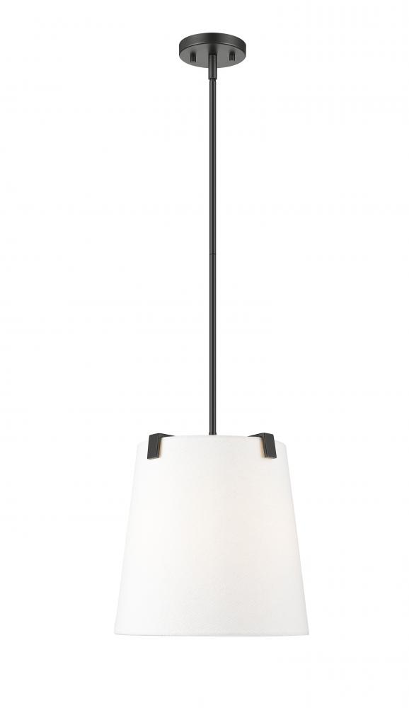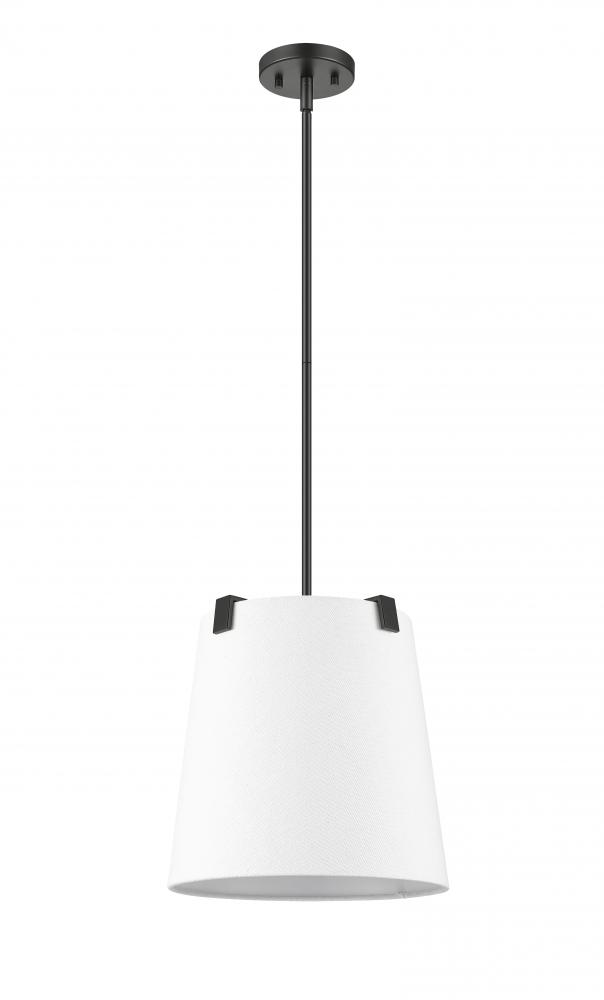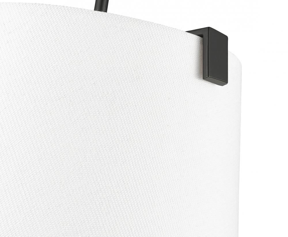 Indulge in a modernized version of traditional lighting with a three-light pendant delivering graceful and fluid design elements. Bold matte black finish steel framing with clips attaches to a bright white linen fabric shade offering low-profile elegance, as candelabra lights diffuse illumination beautifully. This fixture is dimmable, creating mood lighting and efficient functionality.