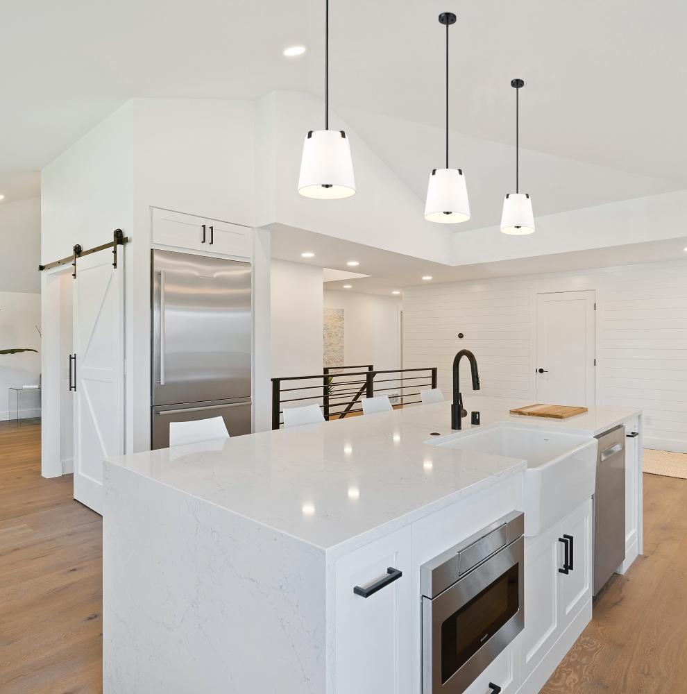 Weston with its dominant presence can provide visual impact in a casual dining area or living room, over a kitchen island, or any room in your home. The Weston family is offered in three sizes (13-, 18-, and 24-inch diameters) and in a choice of a White li