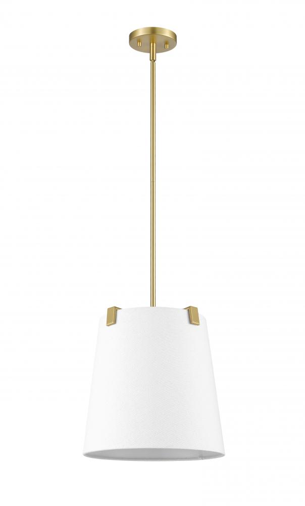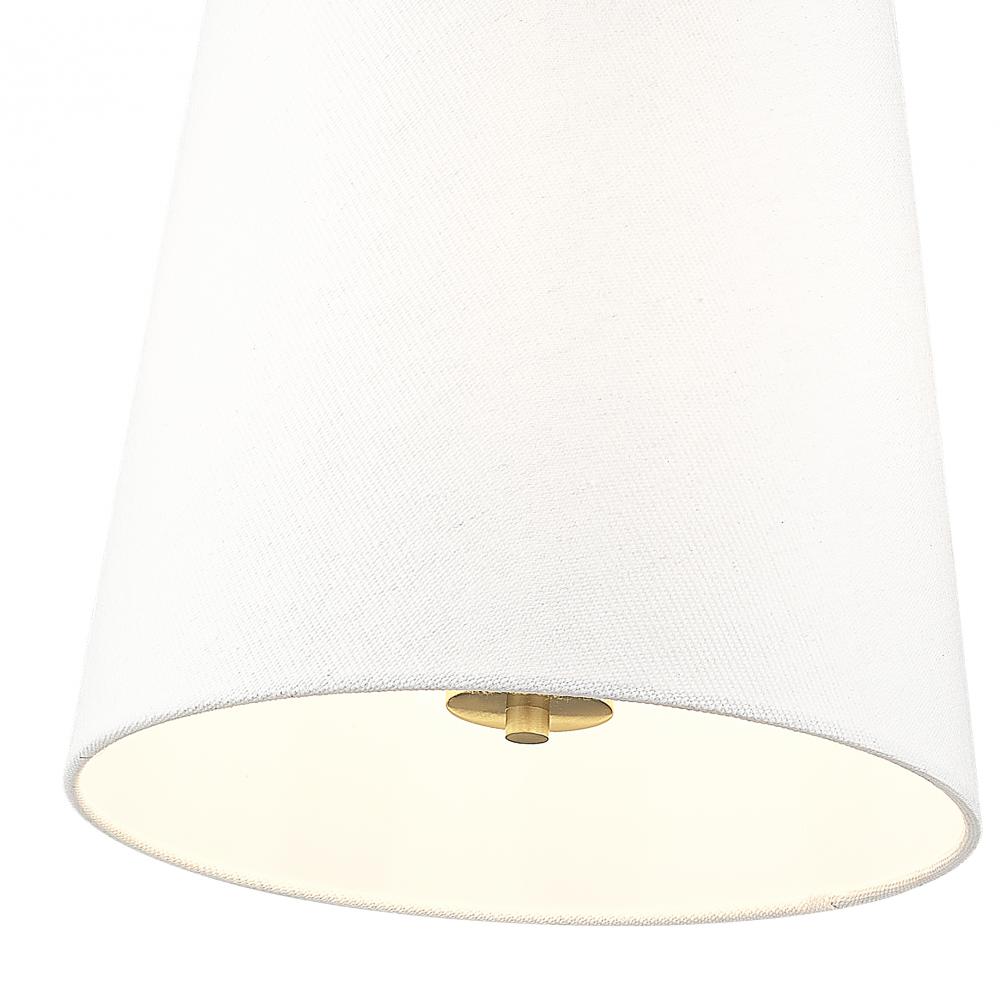 Indulge in a modernized version of traditional lighting with a three-light pendant delivering graceful and fluid design elements. Glam-inspired modern gold finish steel framing with clips attaches to a white linen fabric shade offers low-profile elegance, as candelabra lights diffuse illumination beautifully. This fixture is dimmable, creating mood lighting and efficient functionality.
