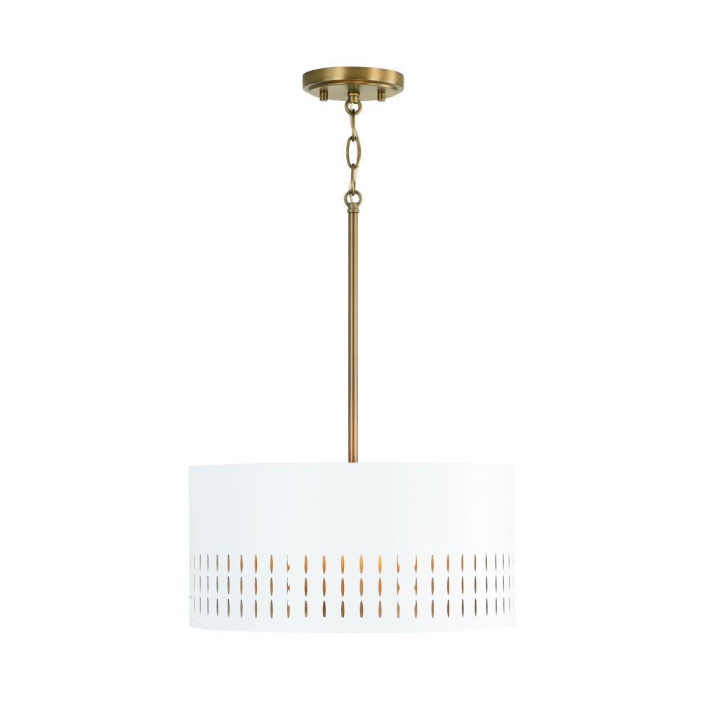 15.5"W x 9.5"H 3-Light Dual Mount Pendant or Semi-Flush in Aged Brass and White Metal Shade with Painted Aged Brass Interior