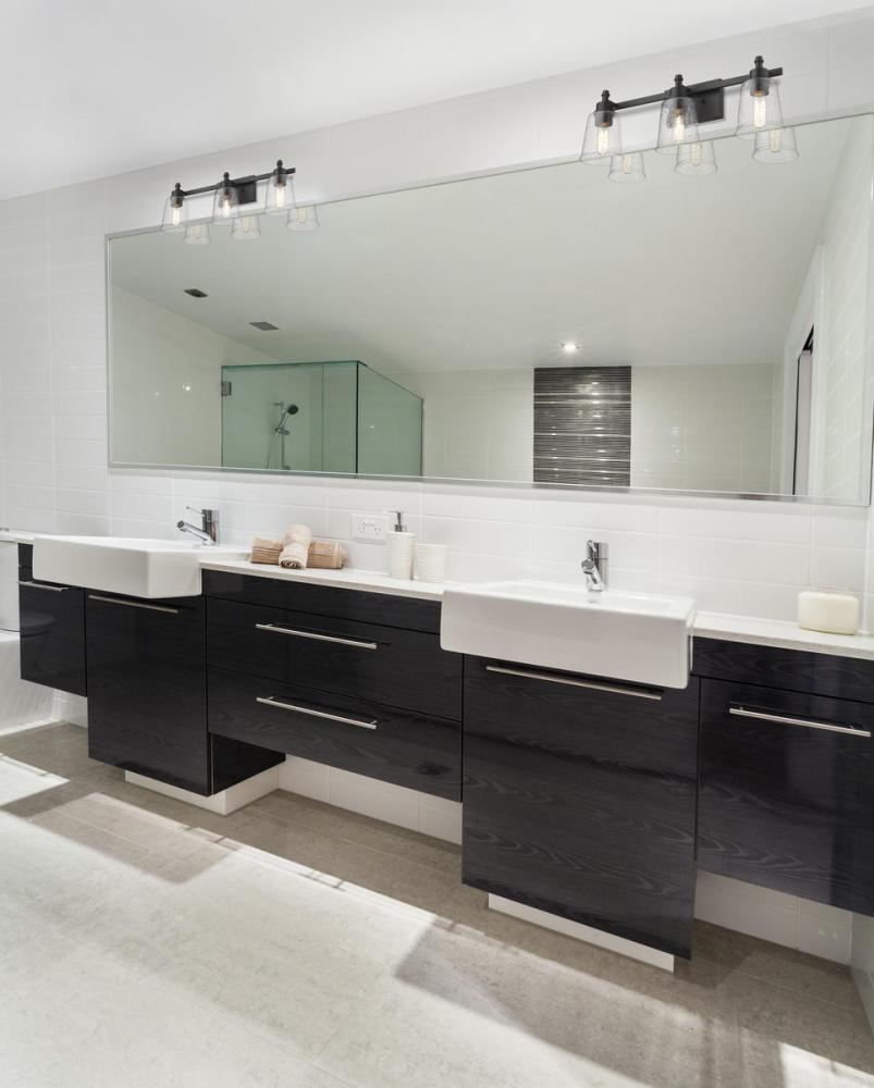 The Bohin collection combines clear seeded glass shades with contemporary styled fixtures. Finishes include matte black or brushed nickel.
