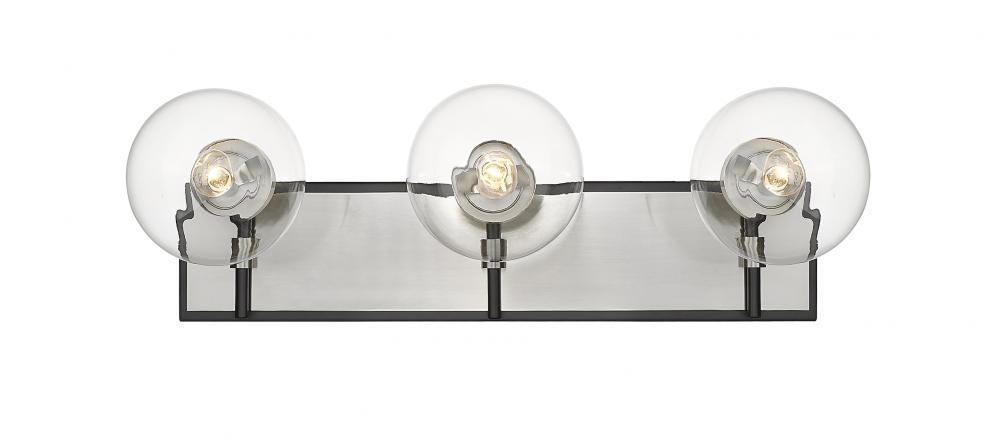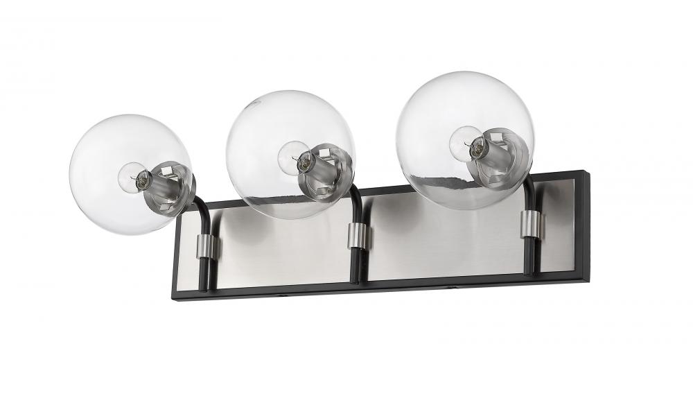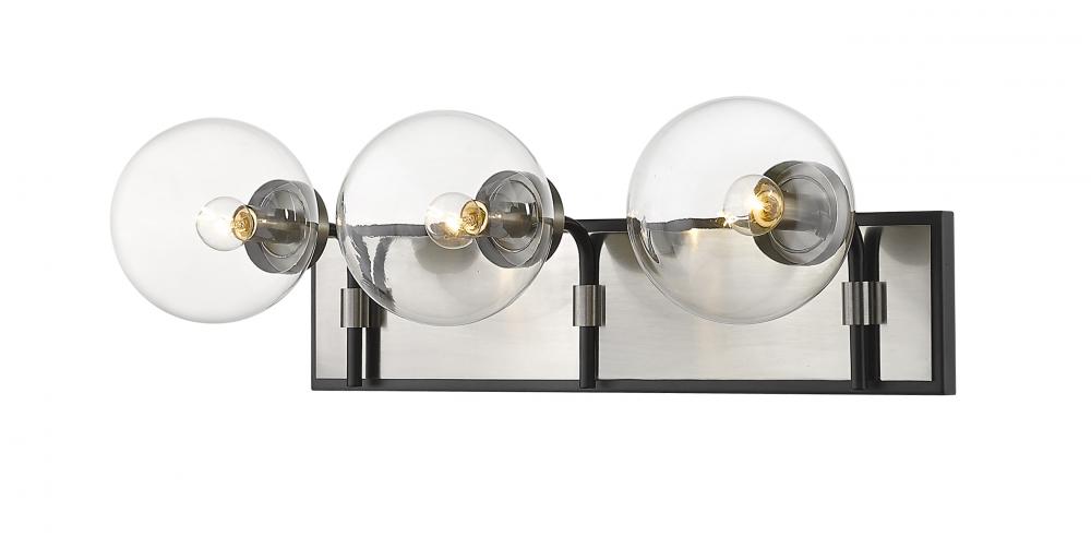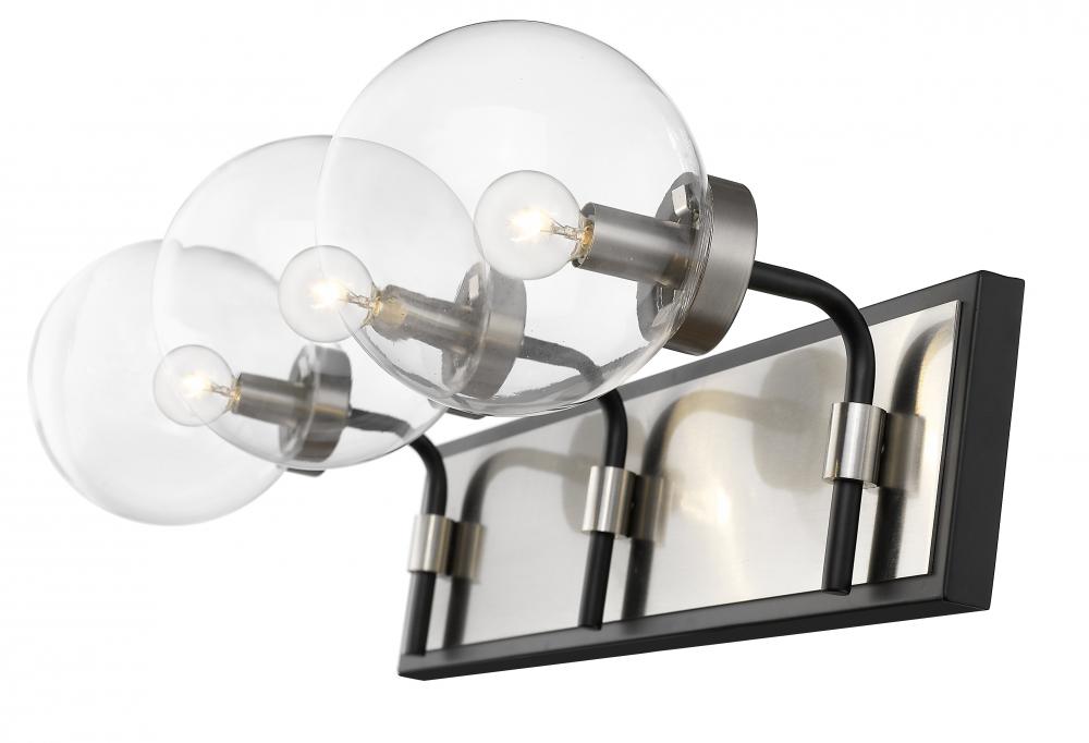 Upgrade the ambiance of your home with this clean, crisp three-light vanity. Its crafted with a matte black and brushed nickel finish and clear glass shades that deliver plenty of radiance. Youll love how its a perfect fit for a bathroom, powder room, or bedroom with its mix of modern glam and edginess.