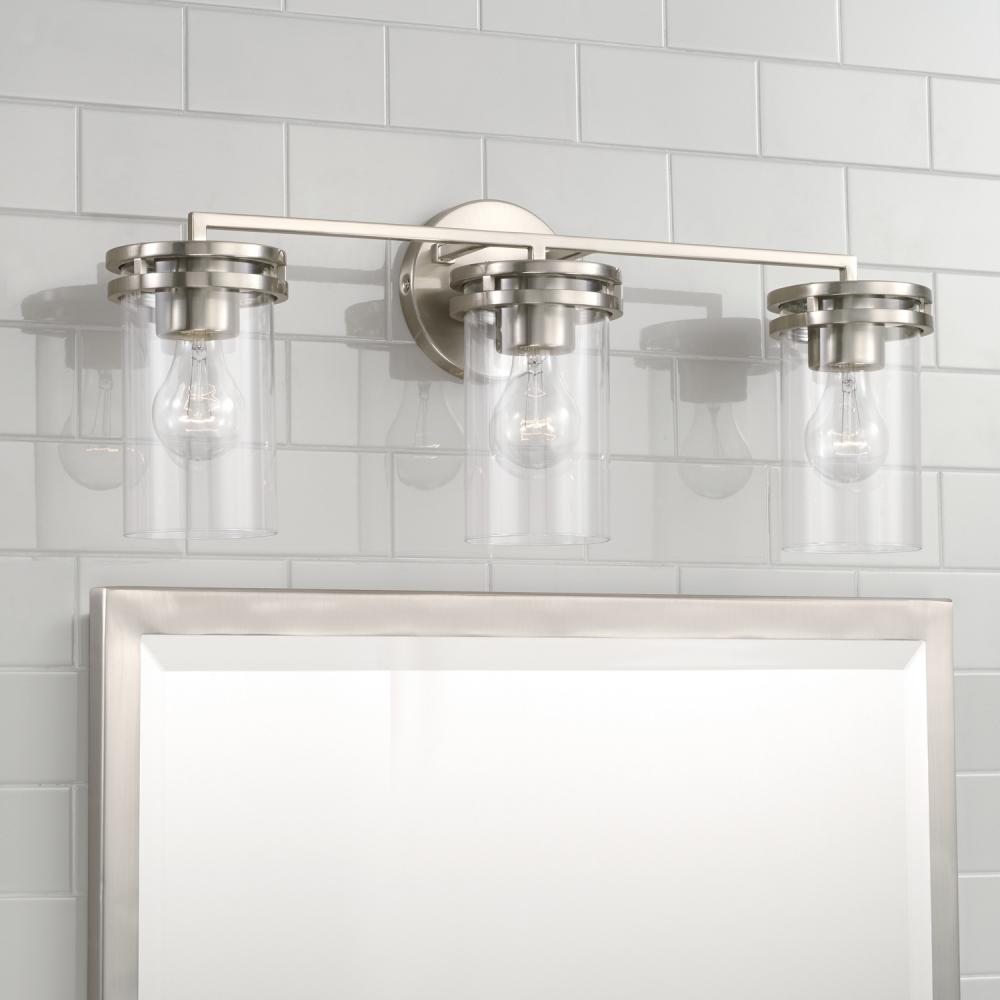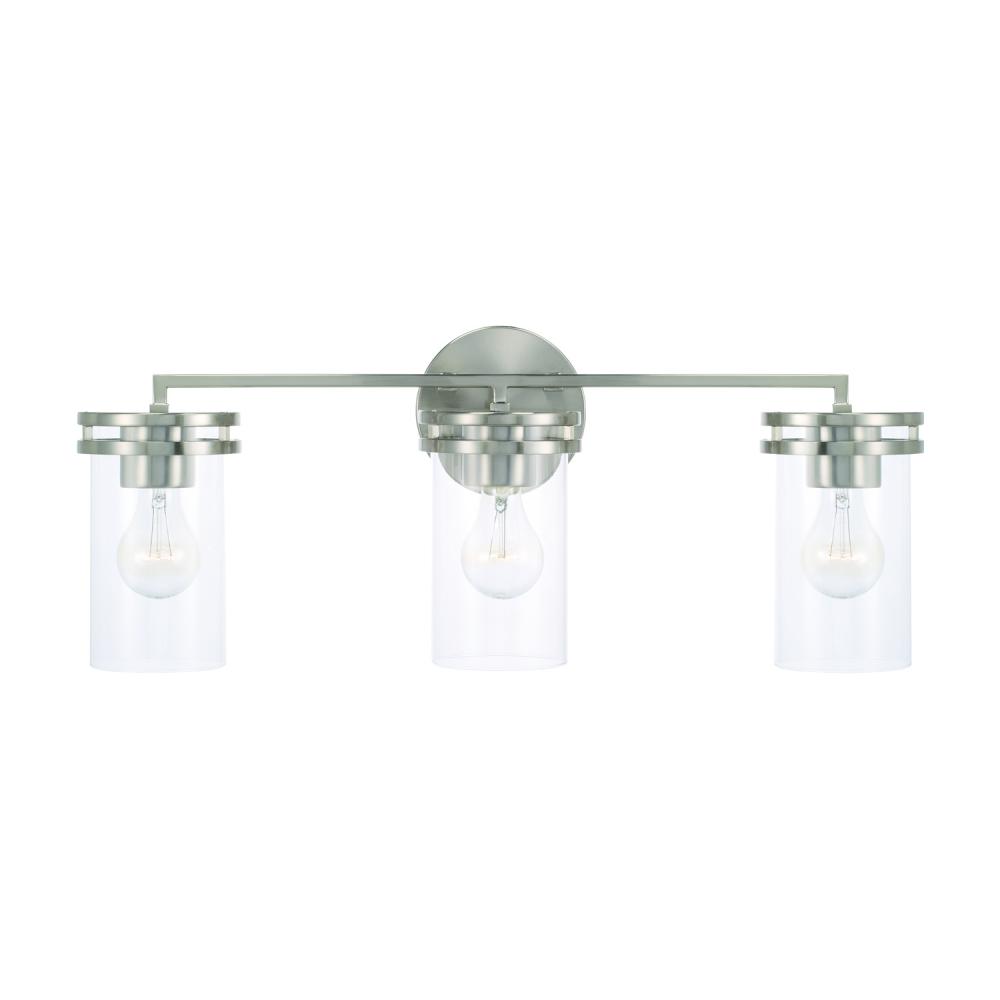 24"W x 9.75"H 3-Light Vanity in Brushed Nickel with Clear Glass