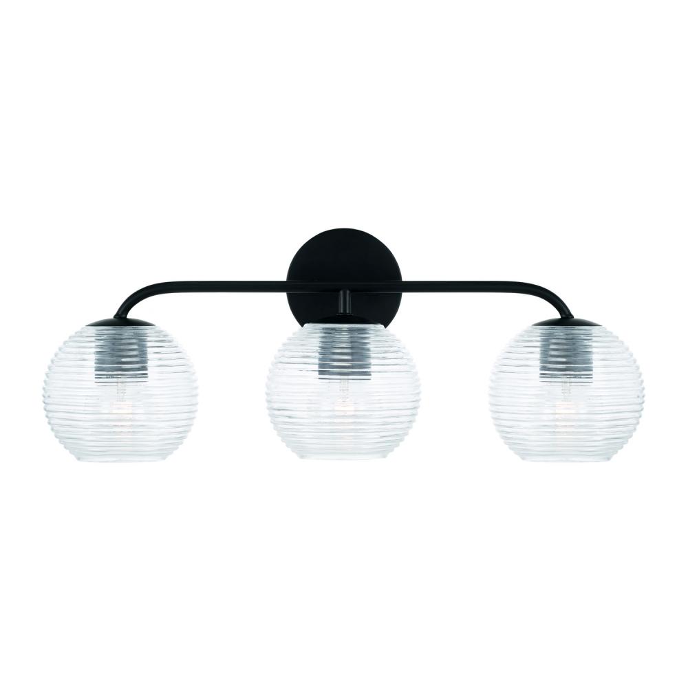 24.5"W x 9.5"H 3-Light Vanity in Matte Black with Clear Ribbed Glass