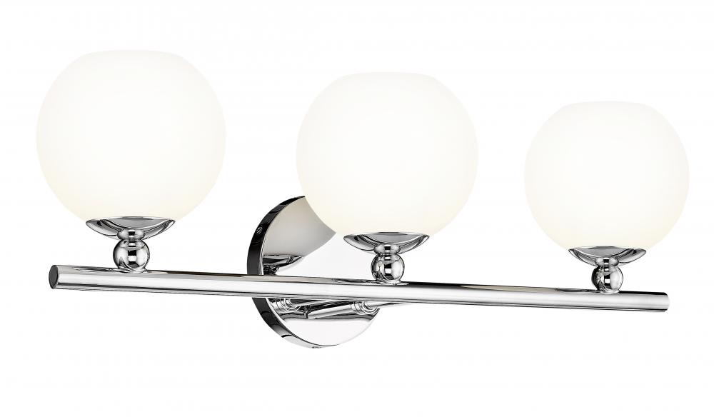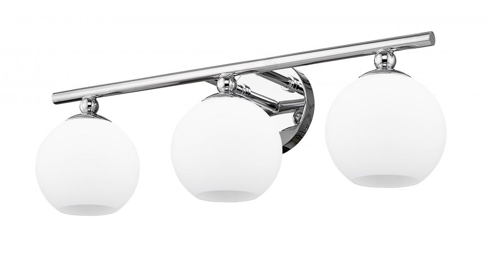 Bring a radiant look that highlights a custom vanity with this contemporary three-light vanity wall light, a classic mix of modern and retro elements that add festive attitude. From the Neoma collection comes a vanity light ideal for an updated ensuite or guest bath with a craving for attention. Opal etched glass globe shades and a minimalist-inspired gleaming chrome finish steel frame join to deliver a stylish look with charming personality.