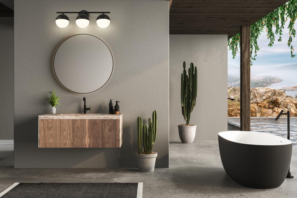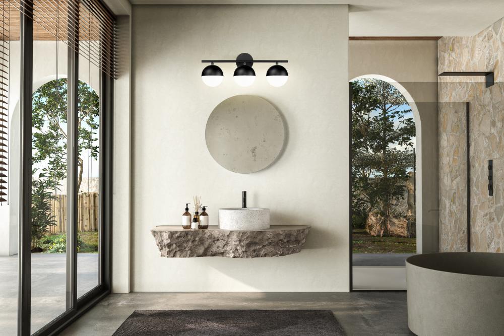 Set a sophisticated tone in your primary or guest en suite with this mid-century three-light vanity bath light. In matte black, it features three orb shades made from matte opal glass, casting soft illumination for daily tasks and rituals. Each shade includes a moveable metal shield, allowing for precision lighting and a custom look and feel.