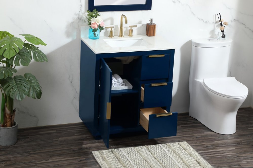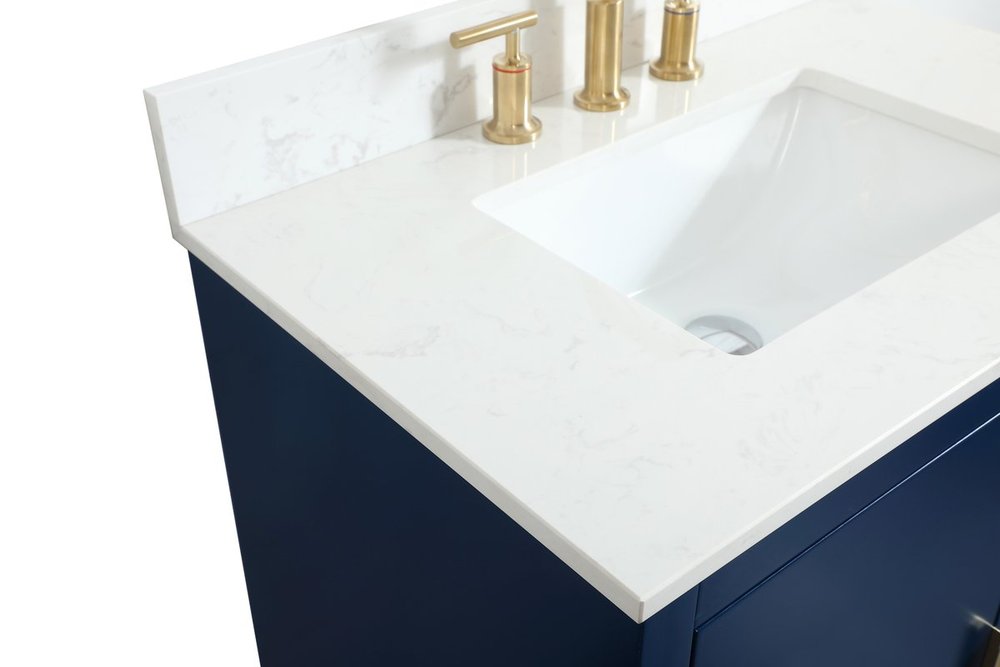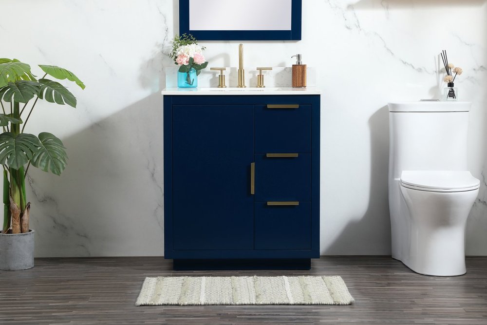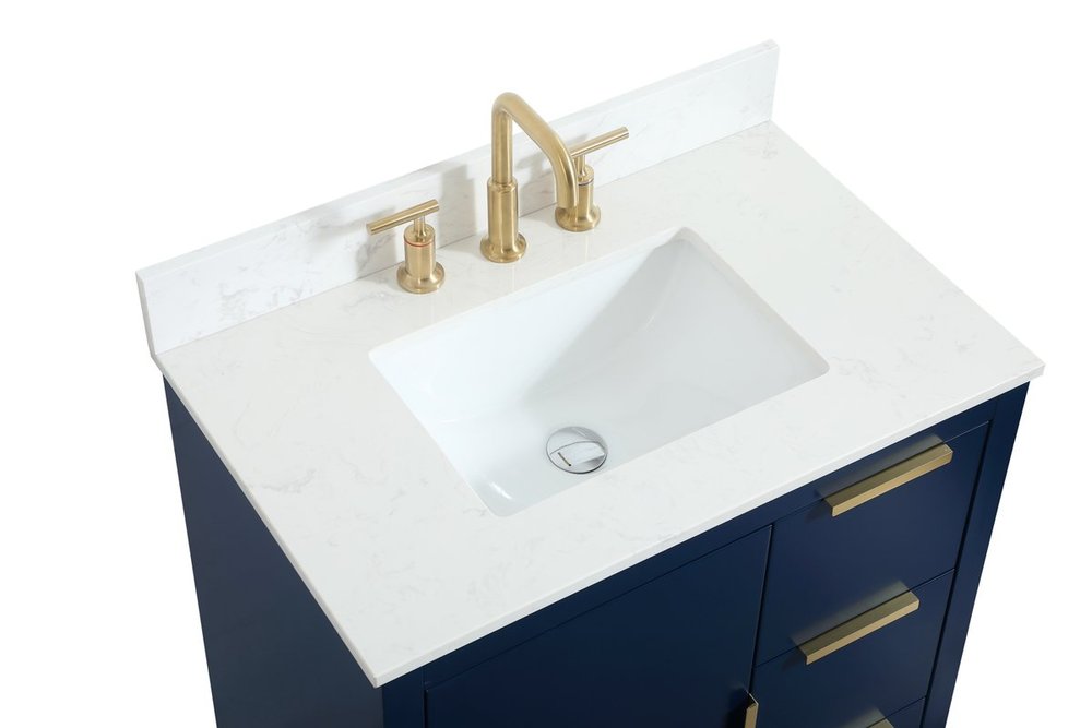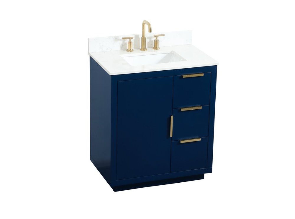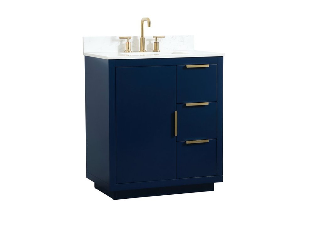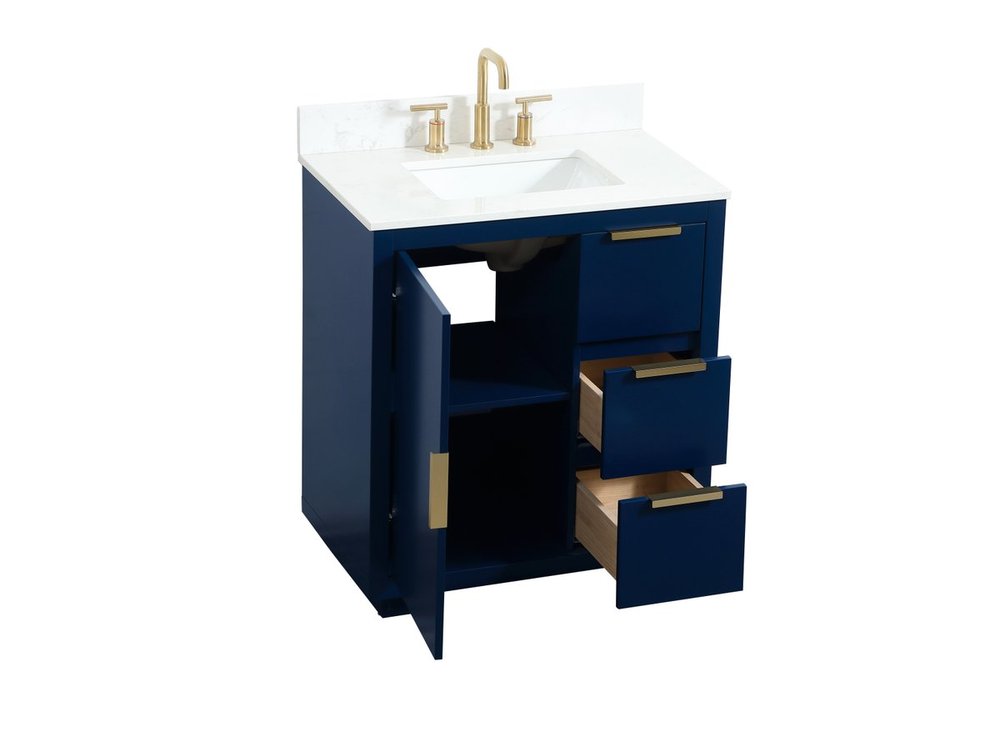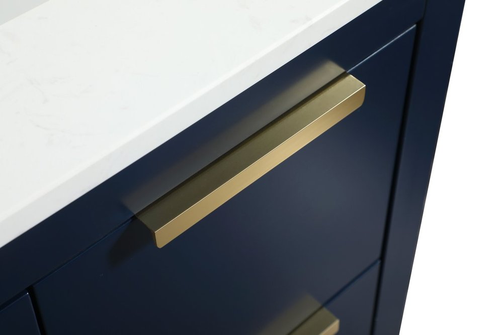 The Blake collection vanity cabinet will be a modern furniture statement piece in your bathroom. Our color combination creates a calming atmosphere in the room. The gold handles bring a vibrant touch to balance the vanity. With the simplistic clean lines, the cabinet catches eyes with its beautiful smooth surface. Open the cabinet doors to store what you desire and make use of the spacious area. Gently close the door and the soft closing glides will quietly closes the door. To top it off, the calacatta engineered marble adds a luxury and modern finish to the durable stonetop. Comes with a matching backsplash.