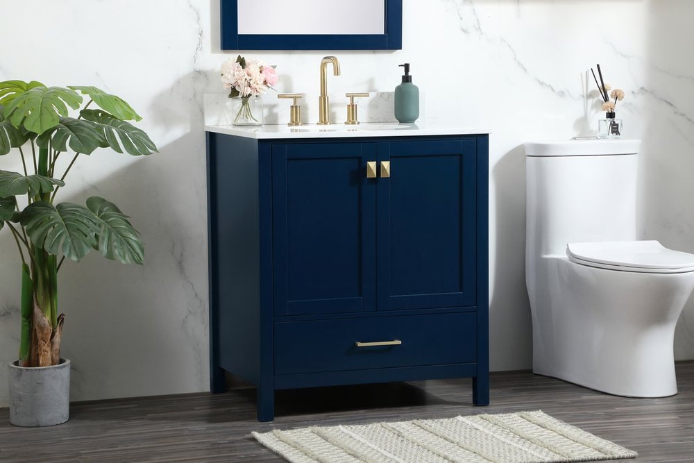 Comes with an undermount porcelain sink and a durable calacatta engineered marble stone top