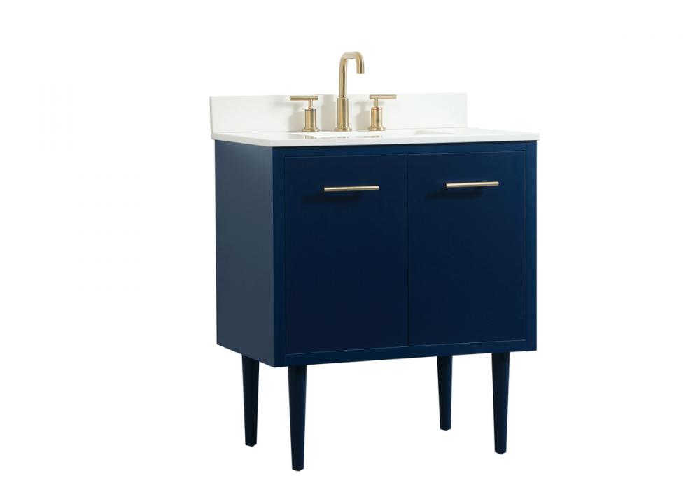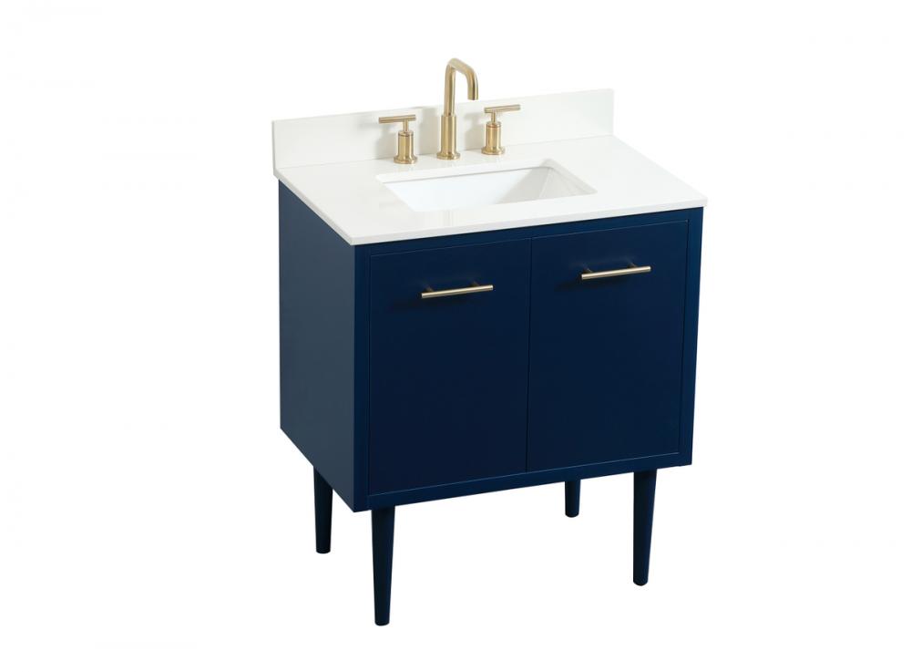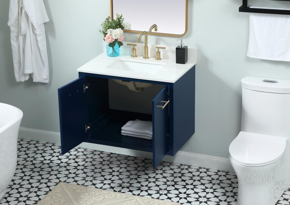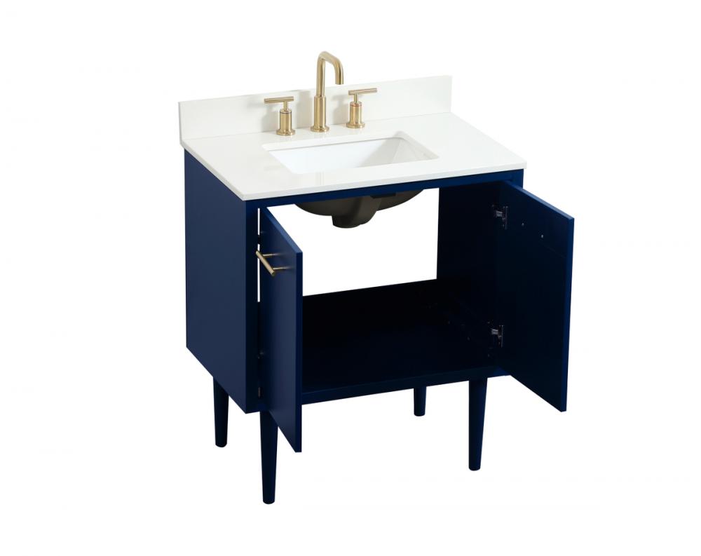 30 inch Single bathroom vanity in blue with backsplash