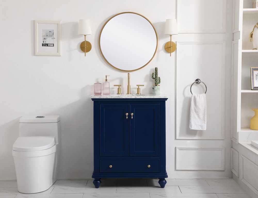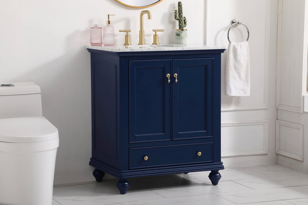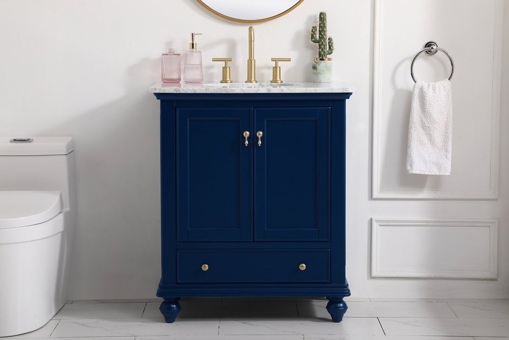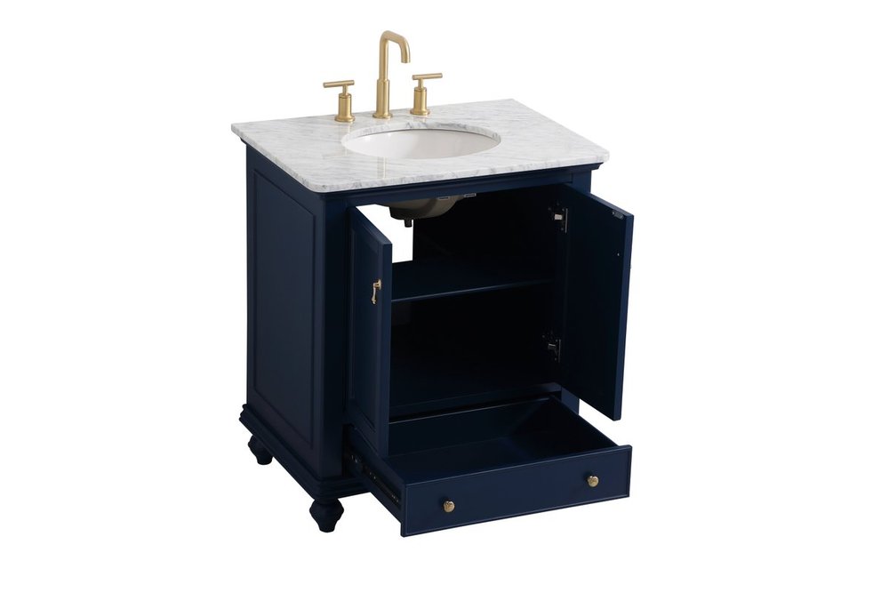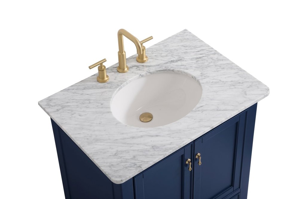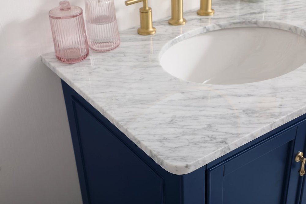 Create a refined and relaxing bath space with this contemporary design vanity, presenting its simplicity and clean straight lines in a minimalist appeal. This vanity, crafted of solid poplar wood and engineered wood panels, provides ample storage within its soft-close cabinet door, accentuated with metal hardware. Rounding out the design is an Itallian Carrara white marble with a white porcelain under-mount oval sink. Features one drawer with soft closing glides.