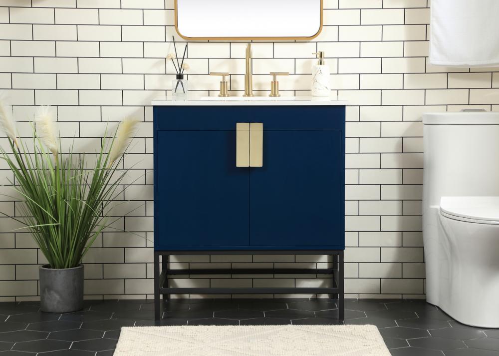 This vanity is a sleek-looking piece of bathroom furniture that is easy to incorporate into your design scheme. The cabinet features a smooth door panel with an oversized steel handle and soft close hinges provide ample room for accessories. Constructed of engineered wood, the powder-coated metal rod legs are an urban industrial look that we love. Minor assembly of the metal legs needed to get this vanity up and running.
