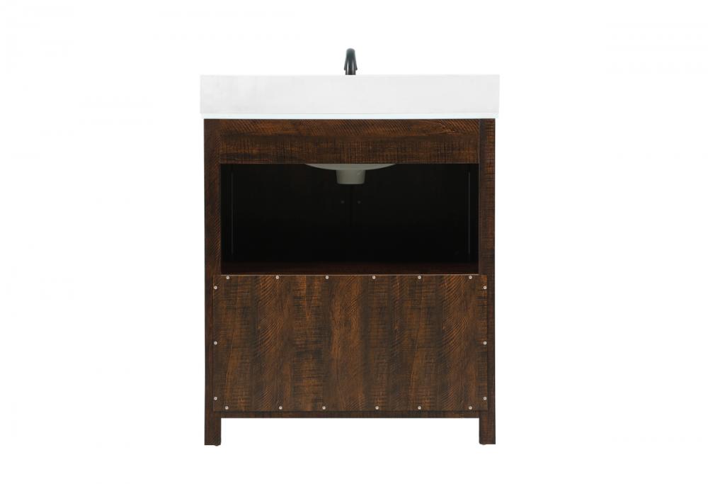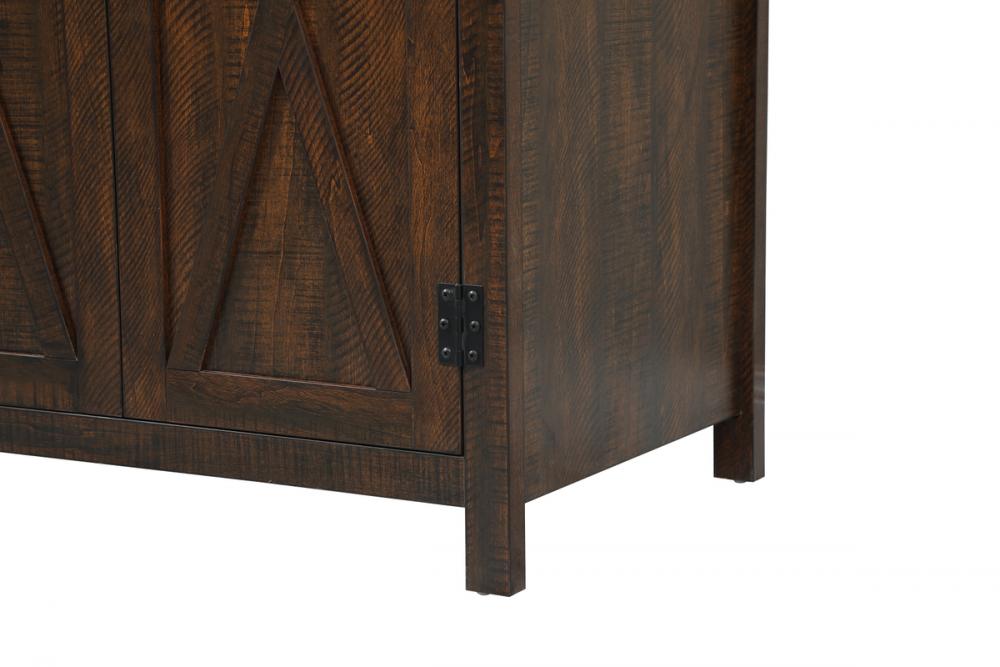 Reminiscent of barn doors, the 2 door cabinet adds both stylistic charm and function with its plethora of storage options for all your bathroom essentials. Whether for your bathroom or the guests', everyone will marvel at its classic look for traditional and farmhouse aesthetics. A slab of engineered marble rounds out the piece up top, as well as the porcelain under mount sink and predrilled faucet holes. This vanity arrives fully assembled. Comes with a matching backsplash to complete the look and protects your wall.