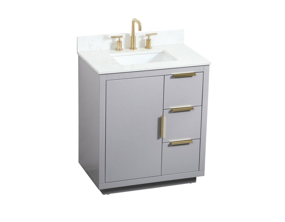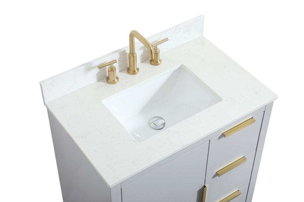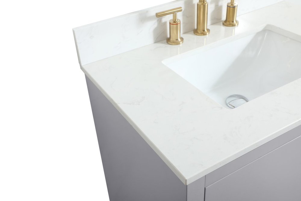 Comes with an undermount porcelain sink and a durable calacatta engineered marble stone top
