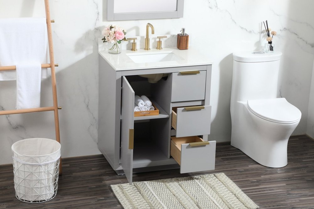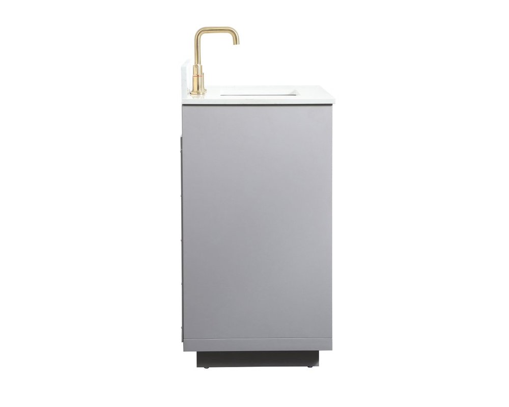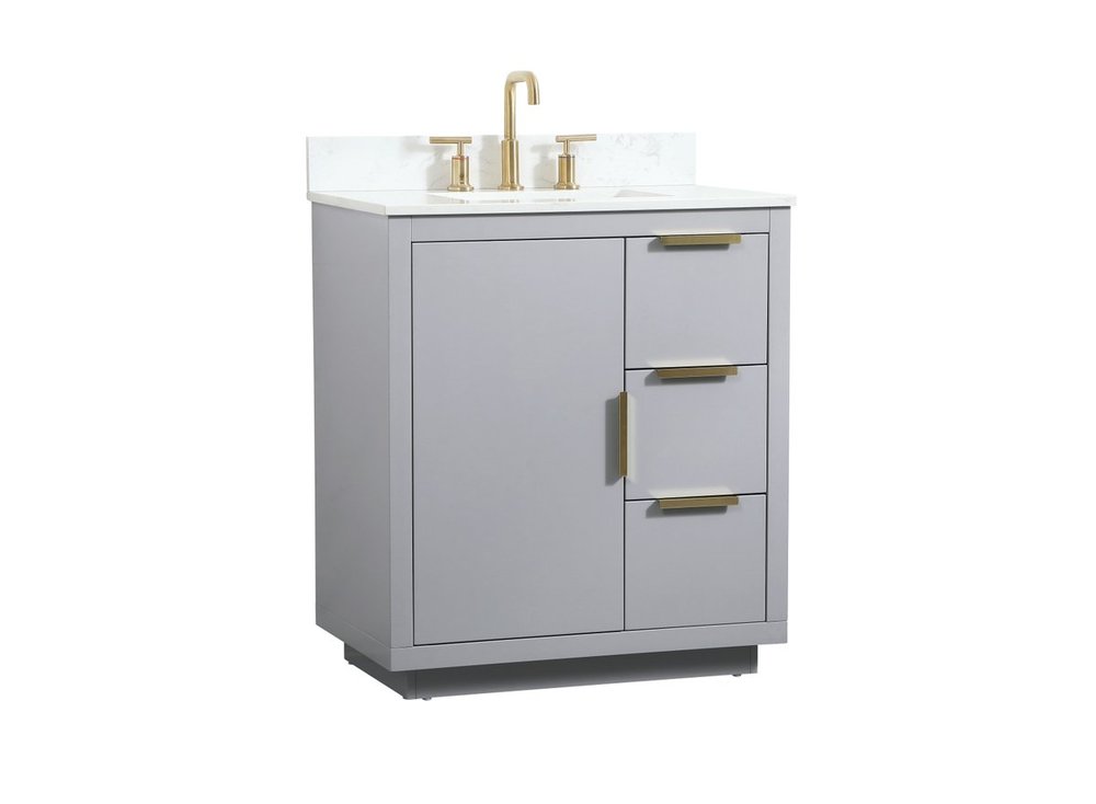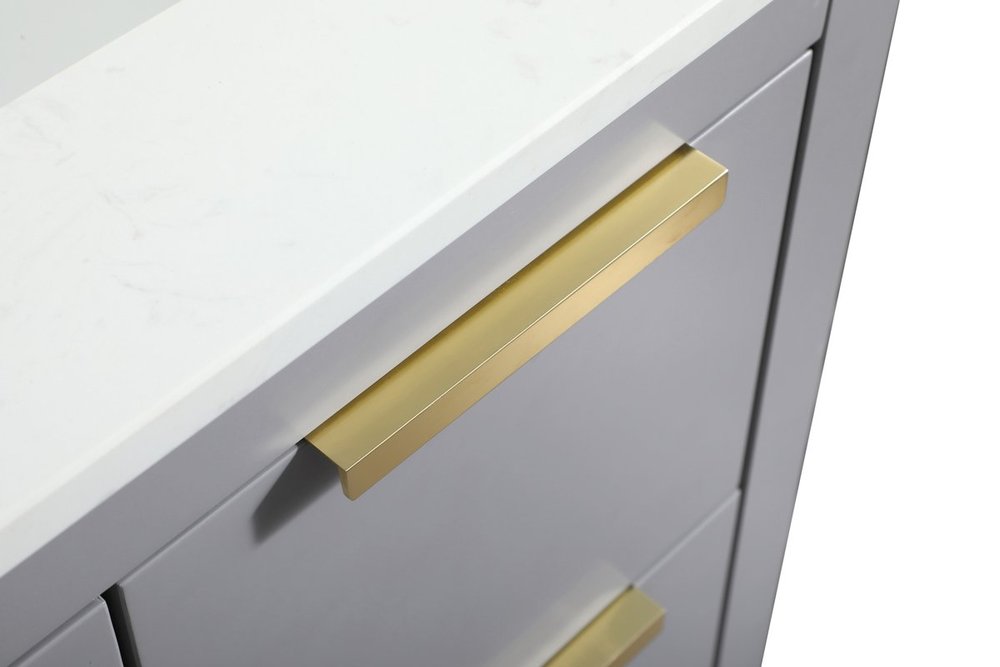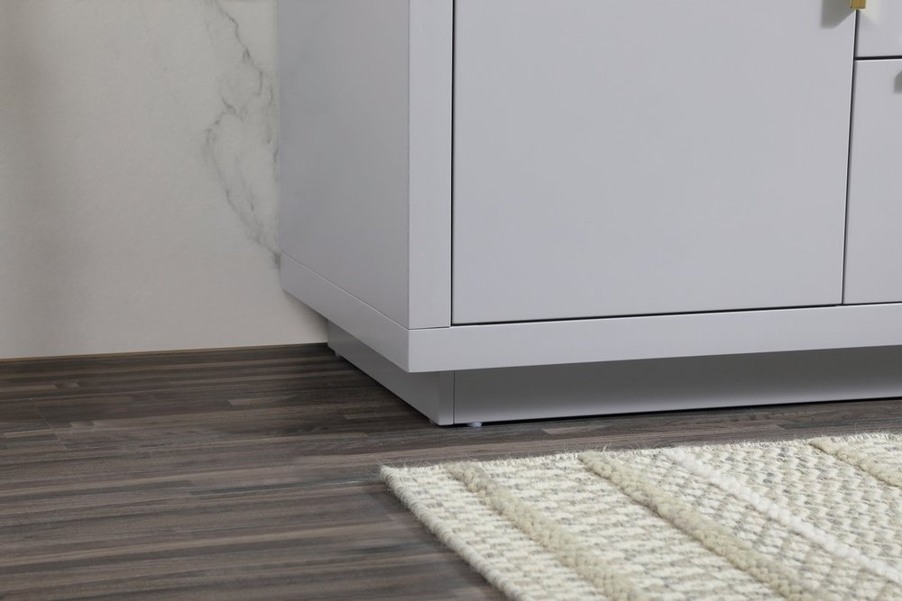 The Blake collection vanity cabinet will be a modern furniture statement piece in your bathroom. Our color combination creates a calming atmosphere in the room. The gold handles bring a vibrant touch to balance the vanity. With the simplistic clean lines, the cabinet catches eyes with its beautiful smooth surface. Open the cabinet doors to store what you desire and make use of the spacious area. Gently close the door and the soft closing glides will quietly closes the door. To top it off, the calacatta engineered marble adds a luxury and modern finish to the durable stonetop. Comes with a matching backsplash.