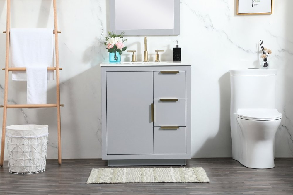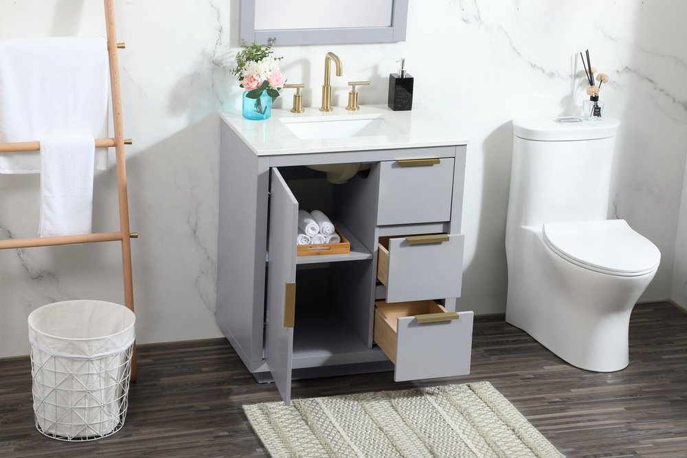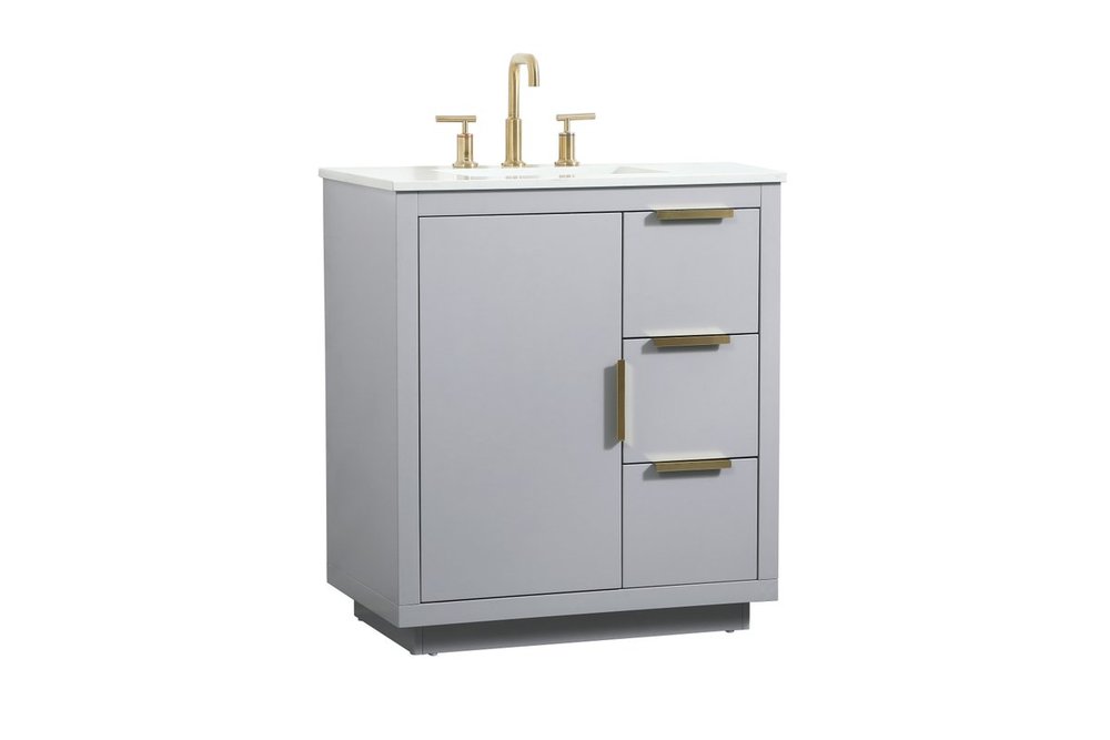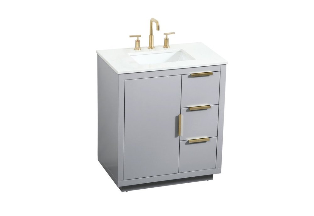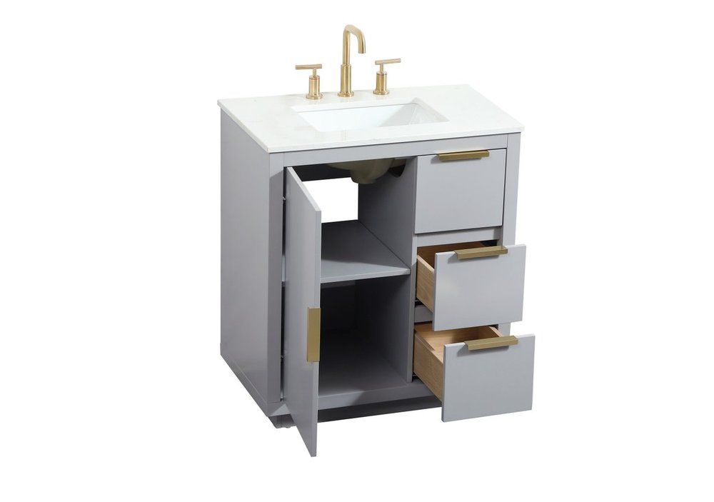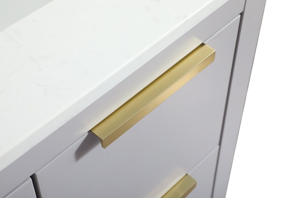 The Blake collection vanity cabinet will be a modern furniture statement piece in your bathroom. Our color combination creates a calming atmosphere in the room. The gold handles bring a vibrant touch to balance the vanity. With the simplistic clean lines, the cabinet catches eyes with its beautiful smooth surface. Open the cabinet doors to store what you desire and make use of the spacious area. Gently close the door and the soft closing glides will quietly closes the door. To top it off, the calacatta engineered marble adds a luxury and modern finish to the durable stonetop.