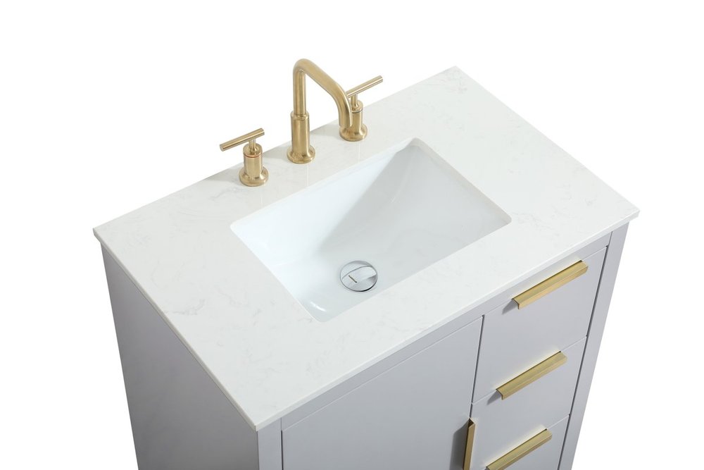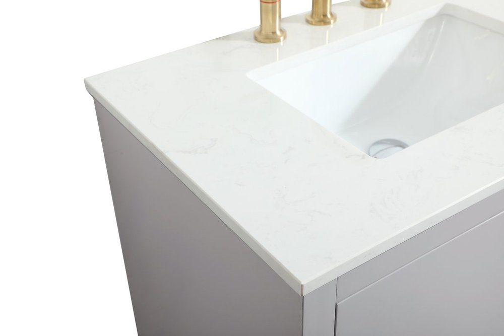 Comes with an undermount porcelain sink and a durable calacatta engineered marble stone top