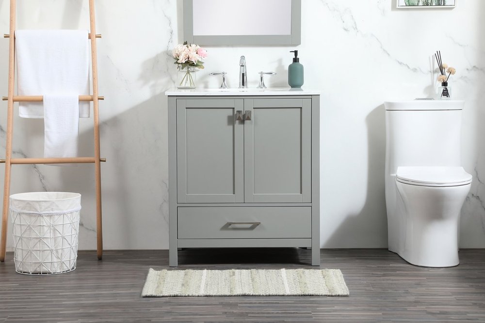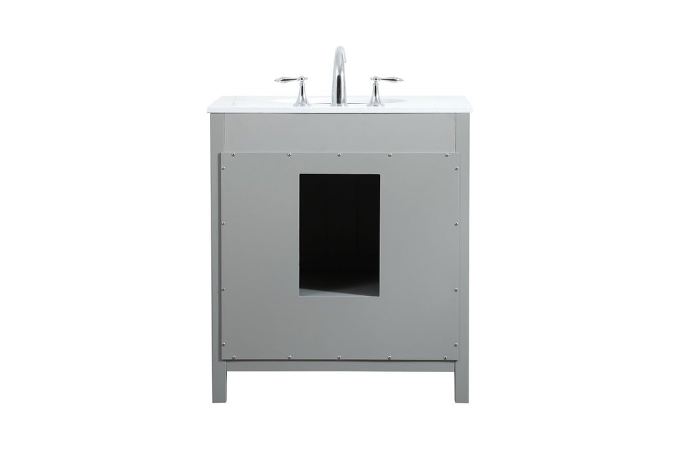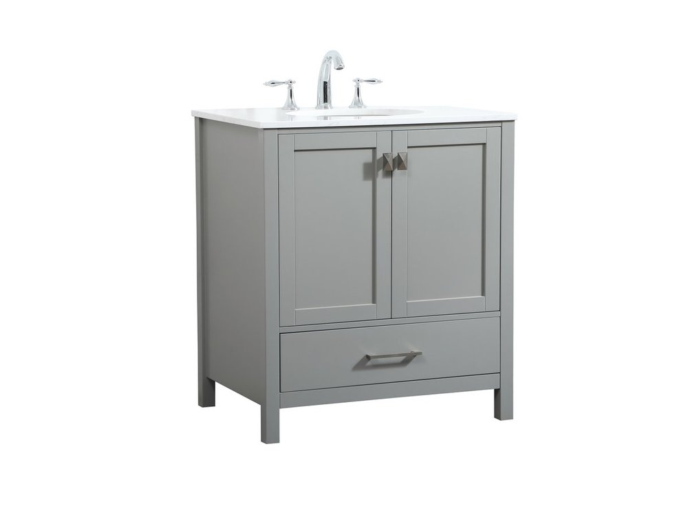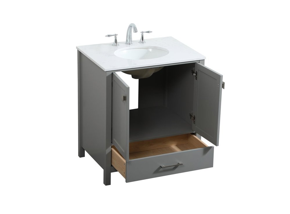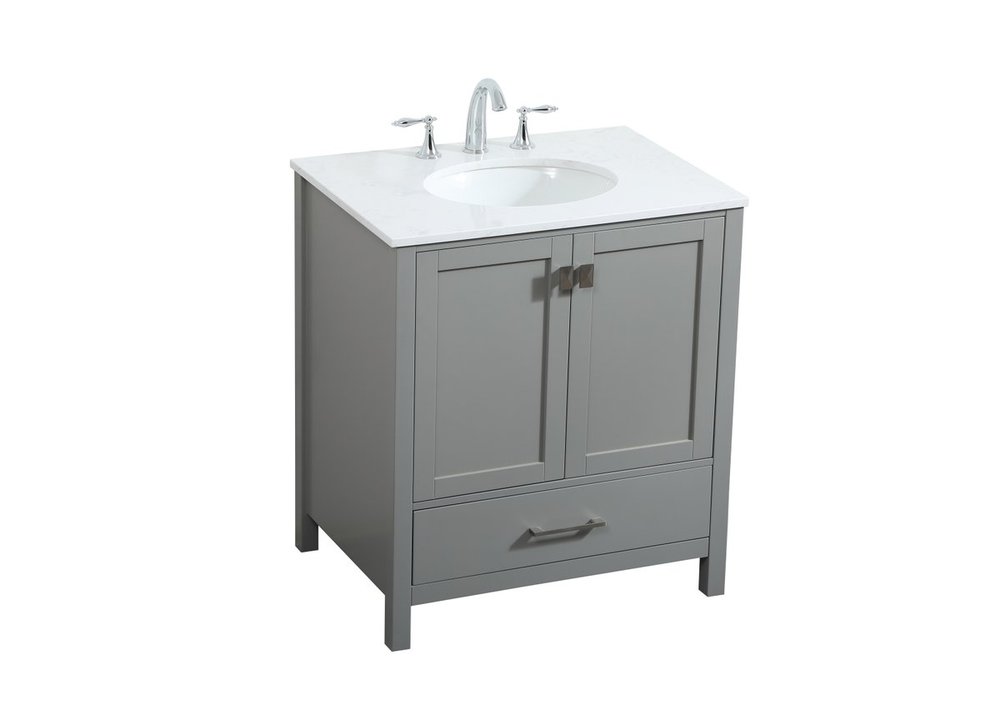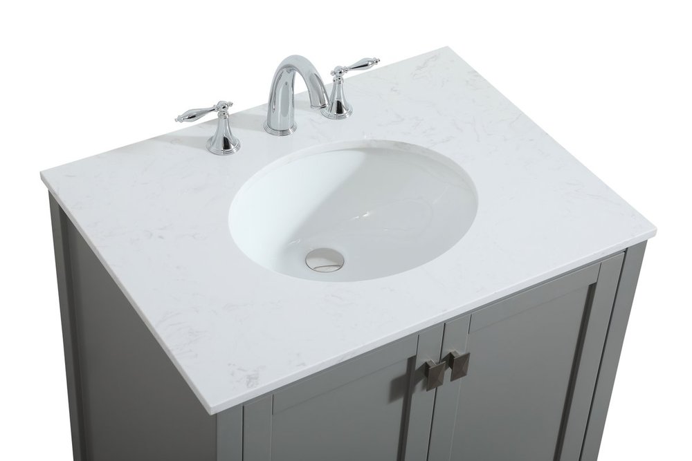 Comes with an undermount porcelain sink and a durable calacatta engineered marble stone top