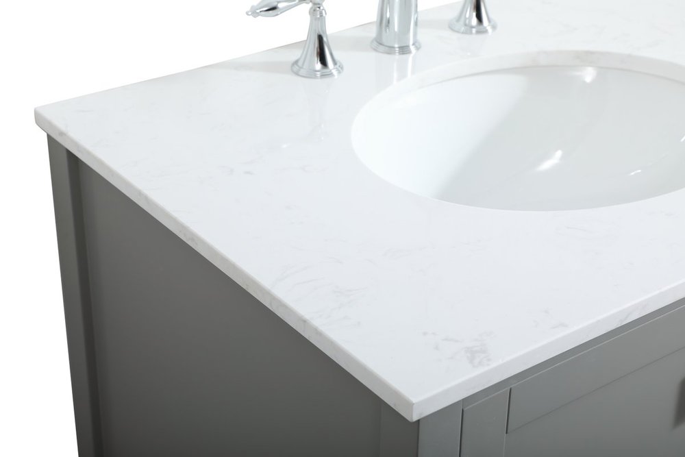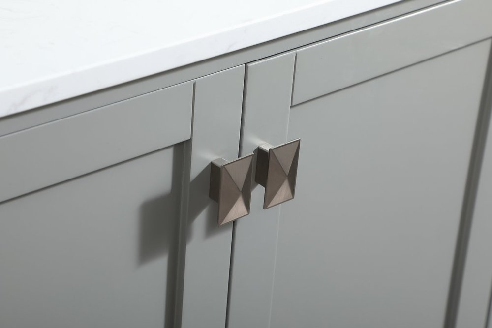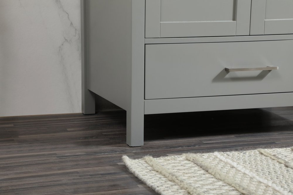 Never compromise beauty--the Irene collection stunning vanity in this finish will add lovely sophistication and complement any bathroom or powder room, while utilizing its charm and function to provide you with ample storage spaces. Brushed nickel pulls gently adorn the minimalist cabinet doors and drawers at the base, allowing for you to store away your bathroom essentials. The calacatta engineered marble countertop, porcelain undermount sink, dignified subtle engravings on the side edges, and squared legs all come together to create contemporary beauty. Work with your space, and design a beautiful room, no matter the size.