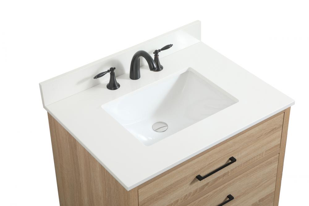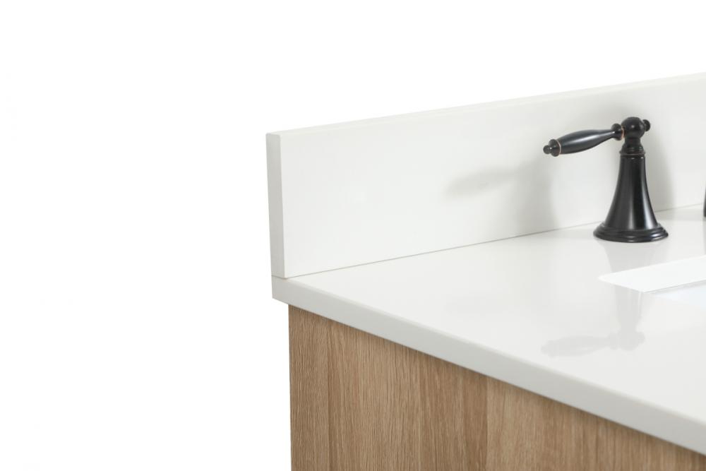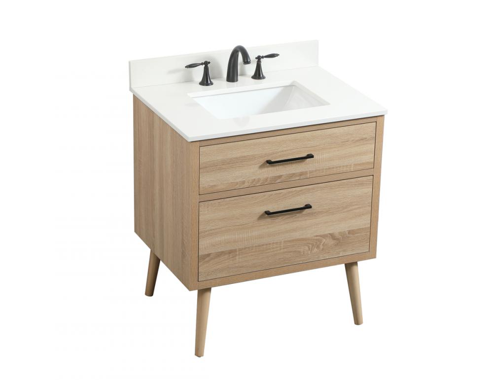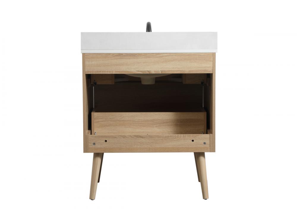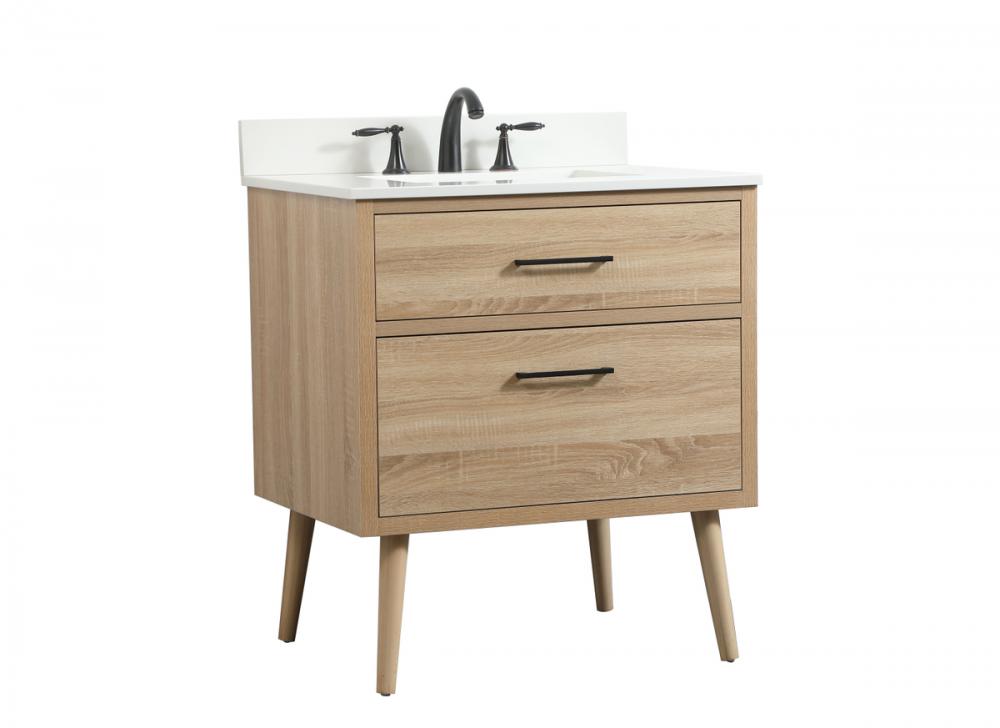 This bathroom vanity is a perfect way to outfit your home in authetic midcentury modern style. The clean lines anchors the design, while the oblique tapered cylinder legs add subtle interest. A black handle adorns the top drawer hiding the base of the undermount porcelain sink while another one allows you to pull the bottom drawer out, letting you store your bathroom necessities and toiletries. The storage drawers provide much needed function and can be used for stowing items like extra toothbrushes, hairbrushes, and other bathroom essentials to help you get ready to face the day. This vanity is a quick update for your bathroom with trendy style. Comes with a matching backsplash to complete the look and protects your wall.