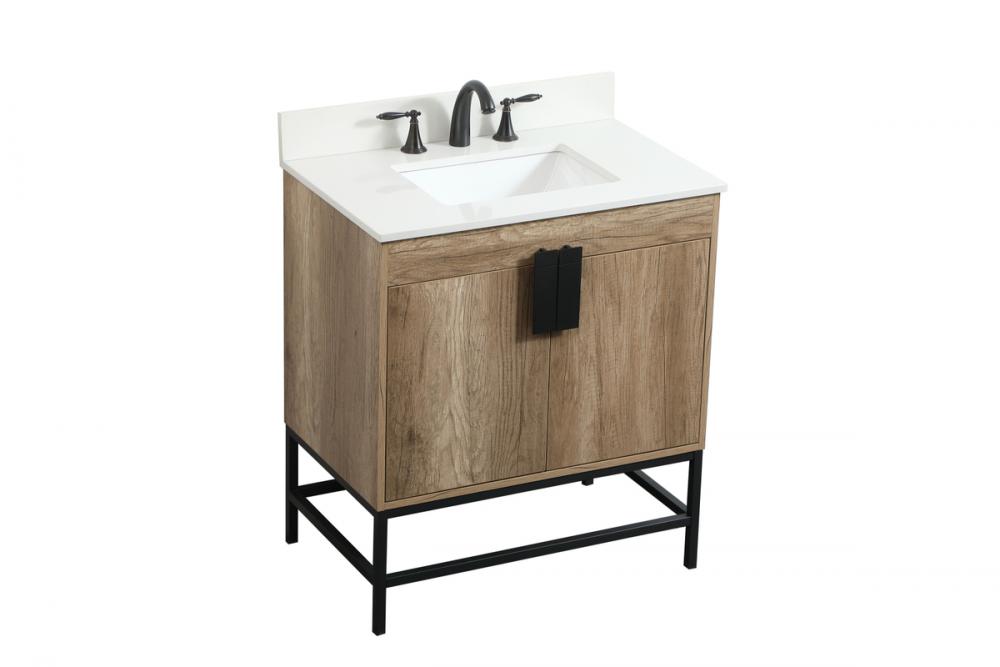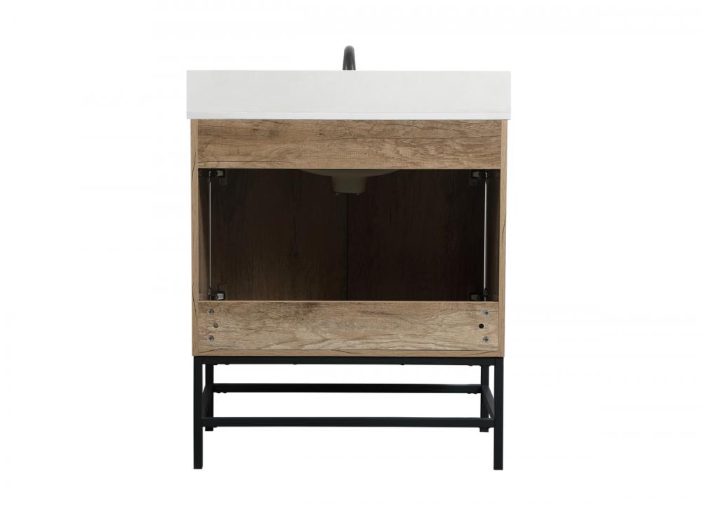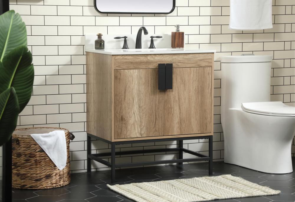 This vanity is a sleek-looking piece of bathroom furniture that is easy to incorporate into your design scheme. The cabinet features a smooth door panel with an oversized steel handle and soft close hinges provide ample room for accessories. Constructed of engineered wood, the powder-coated metal rod legs are an urban industrial look that we love. Minor assembly of the metal legs needed to get this vanity up and running. Comes with a matching backsplash to complete the look and protects your wall.