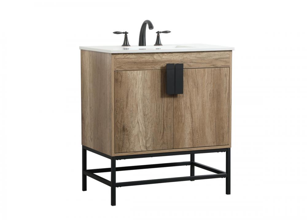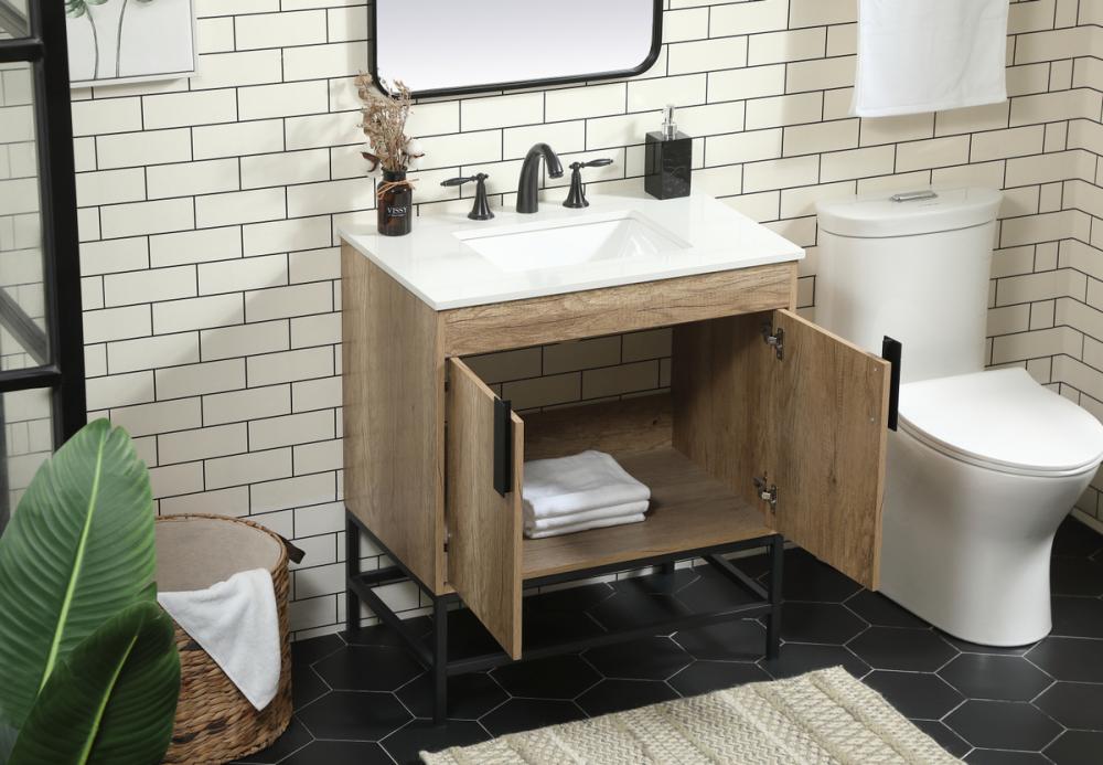 This vanity is a sleek-looking piece of bathroom furniture that is easy to incorporate into your design scheme. The cabinet features a smooth door panel with an oversized steel handle and soft close hinges provide ample room for accessories. Constructed of engineered wood, the powder-coated metal rod legs are an urban industrial look that we love. Minor assembly of the metal legs needed to get this vanity up and running.