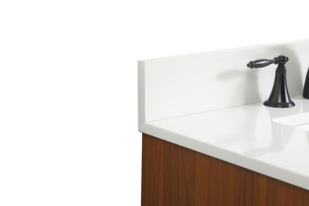 Crafted with durable engineered marble top in ivory white finish and comes with a matching backsplash that measures 30"l x 0.71"w x 3.94"h