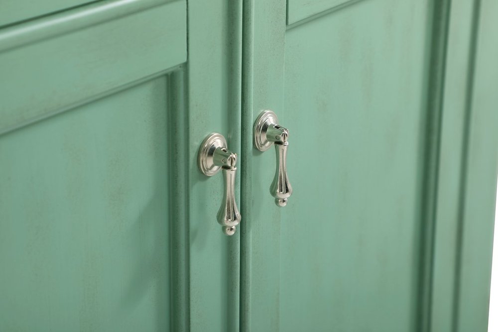 Create a refined and relaxing bath space with this contemporary design vanity, presenting its simplicity and clean straight lines in a minimalist appeal. This vanity, crafted of solid poplar wood and engineered wood panels, provides ample storage within its soft-close cabinet door, accentuated with metal hardware. Rounding out the design is a black granite top with a white porcelain under-mount oval sink. Convenient access for plumbing installation with cut out back panel. Hand painted finish with distressing application to provide an antique effect.
