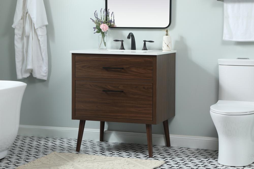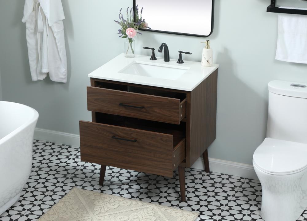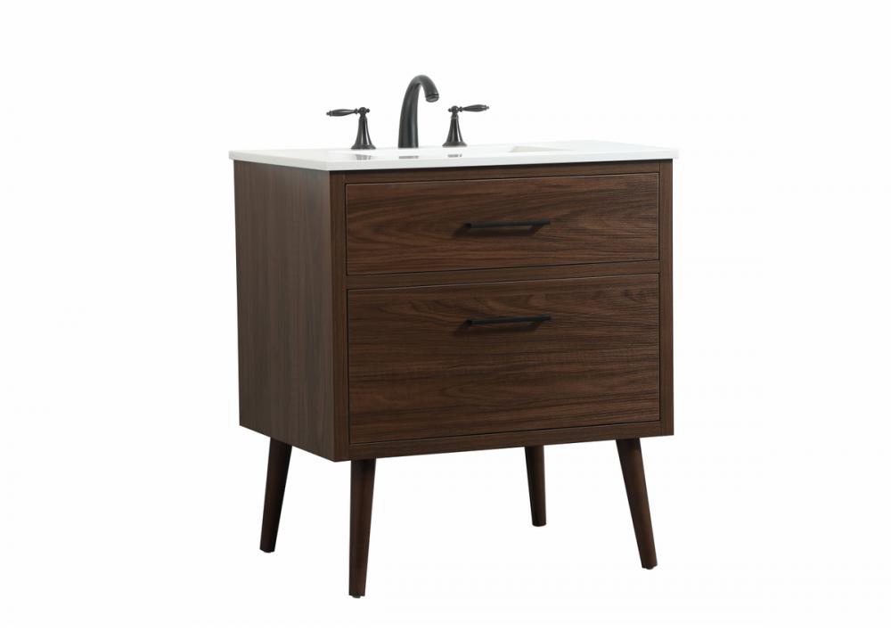 30 inch Single bathroom vanity in walnut