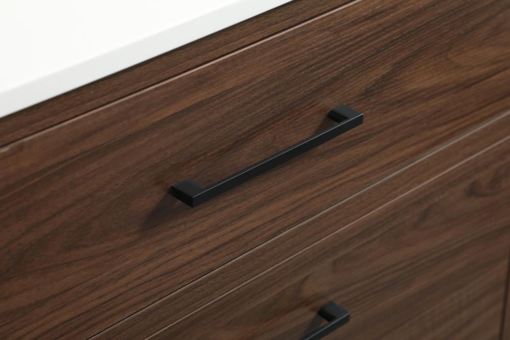 This bathroom vanity is a perfect way to outfit your home in authetic midcentury modern style. The clean lines anchors the design, while the oblique tapered cylinder legs add subtle interest. A black handle adorns the top drawer hiding the base of the undermount porcelain sink while another one allows you to pull the bottom drawer out, letting you store your bathroom necessities and toiletries. The storage drawers provide much needed function and can be used for stowing items like extra toothbrushes, hairbrushes, and other bathroom essentials to help you get ready to face the day. This vanity is a quick update for your bathroom with trendy style.