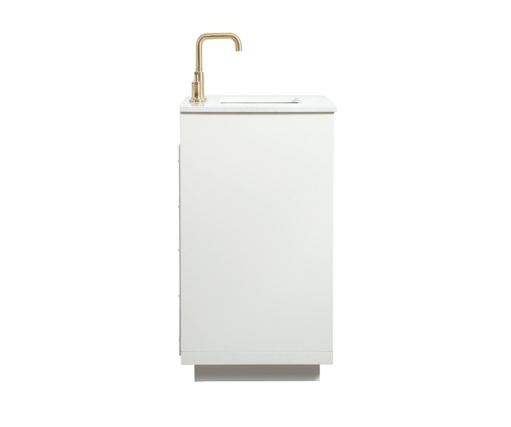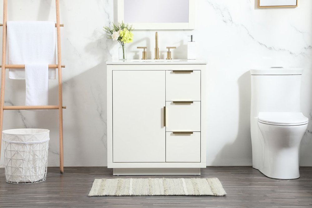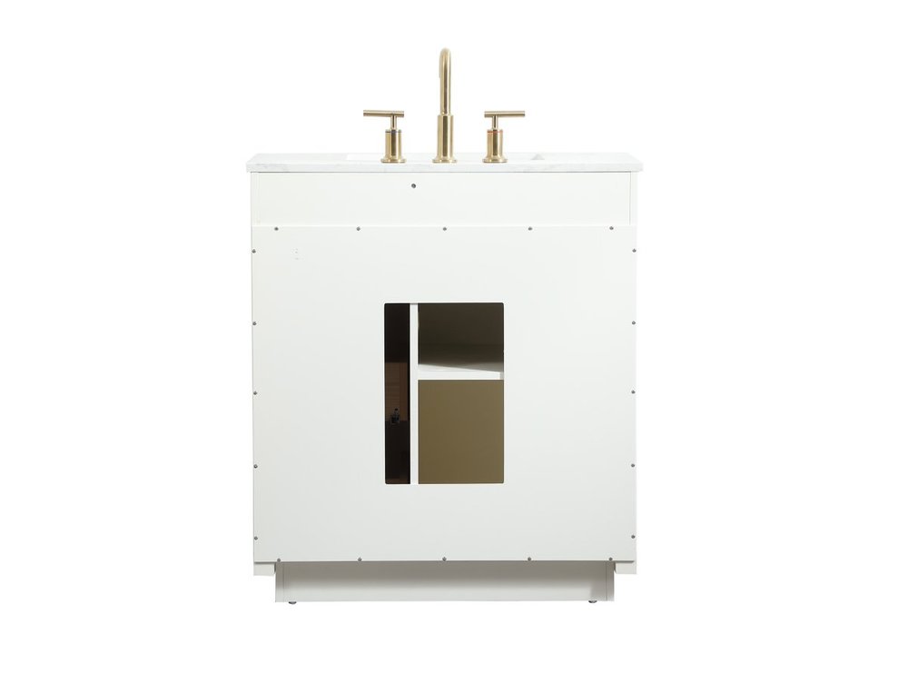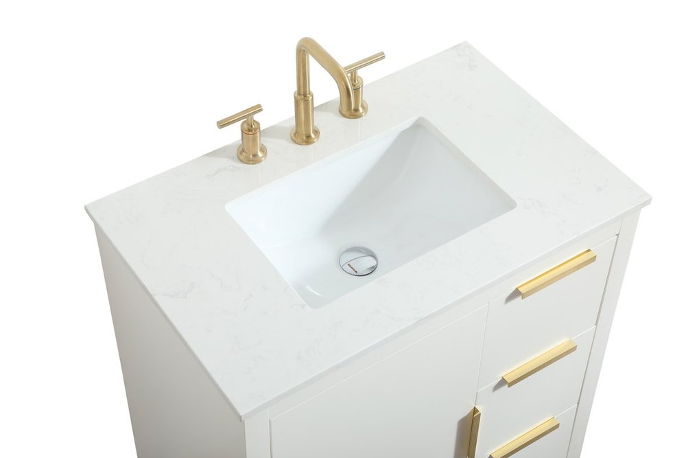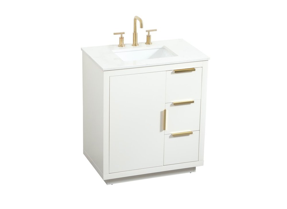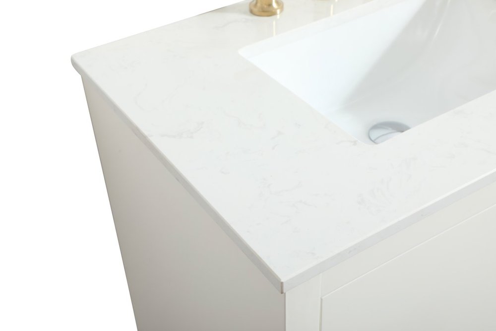 Comes with an undermount porcelain sink and a durable calacatta engineered marble stone top