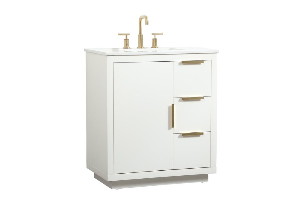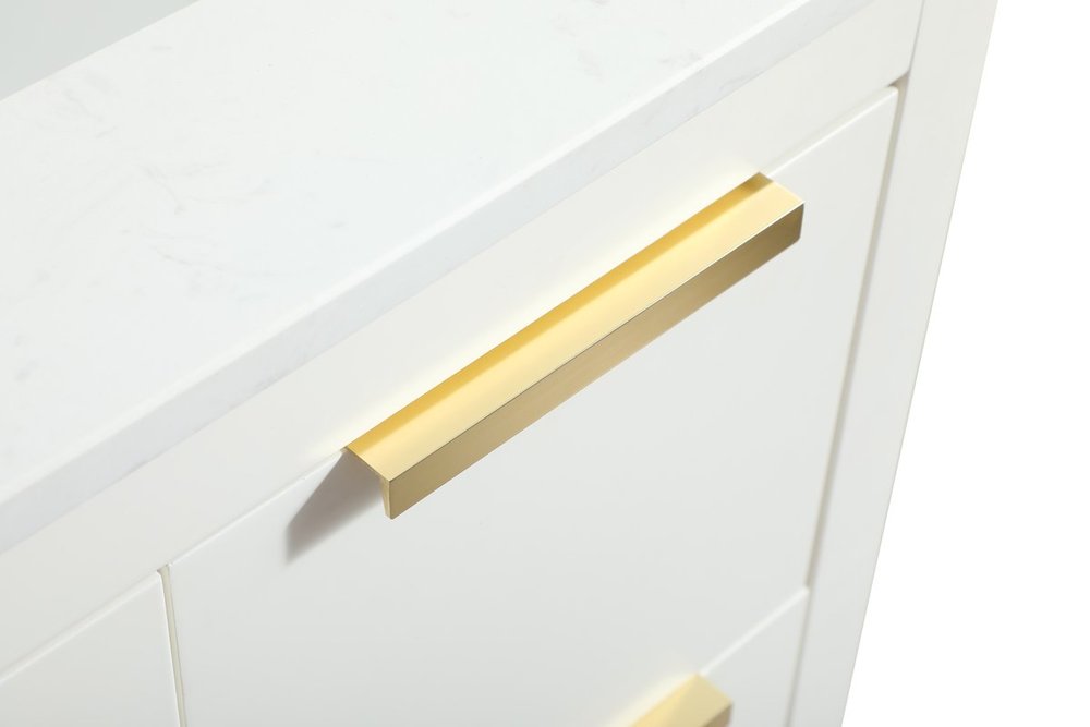 The Blake collection vanity cabinet will be a modern furniture statement piece in your bathroom. Our color combination creates a calming atmosphere in the room. The gold handles bring a vibrant touch to balance the vanity. With the simplistic clean lines, the cabinet catches eyes with its beautiful smooth surface. Open the cabinet doors to store what you desire and make use of the spacious area. Gently close the door and the soft closing glides will quietly closes the door. To top it off, the calacatta engineered marble adds a luxury and modern finish to the durable stonetop.