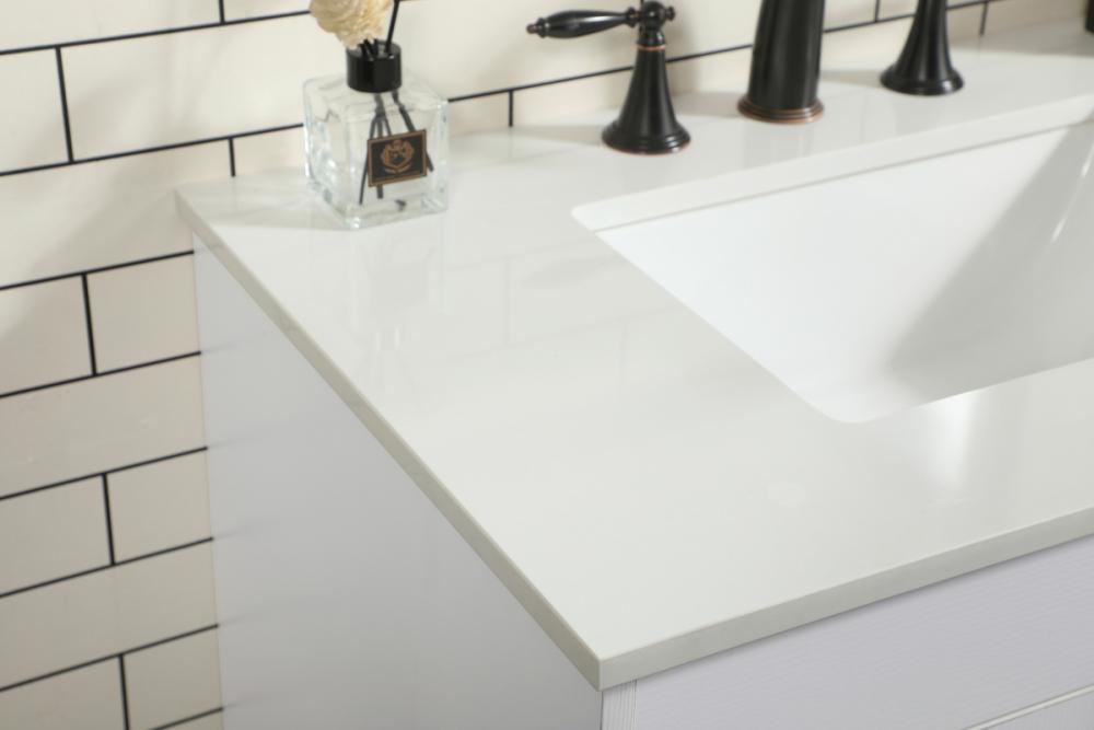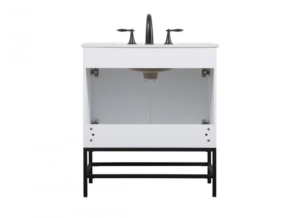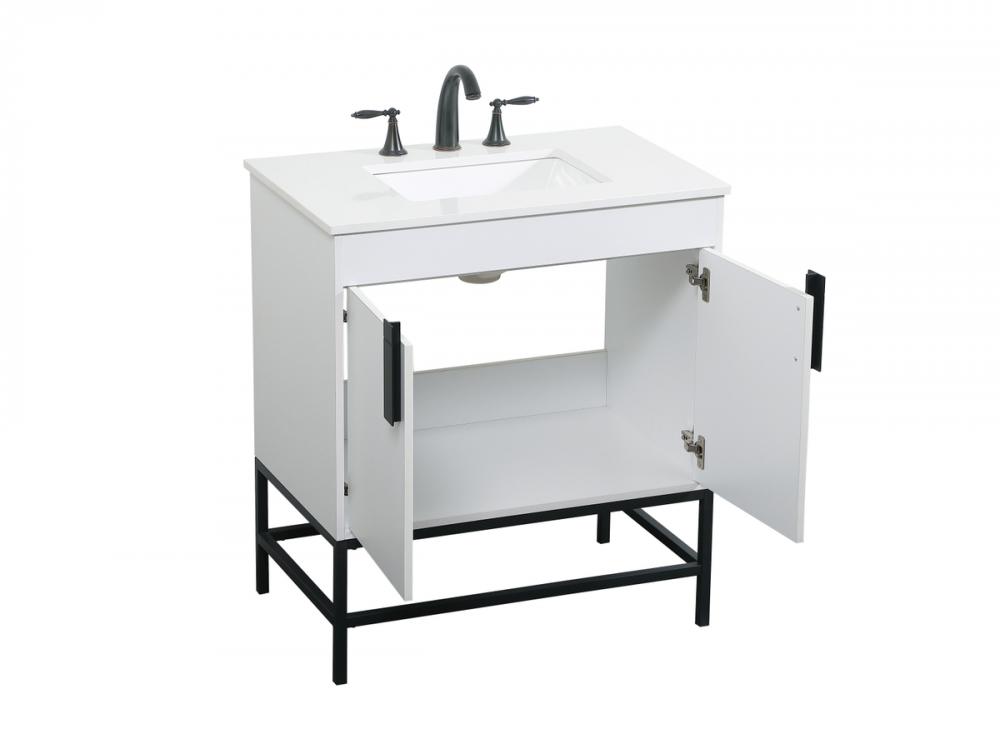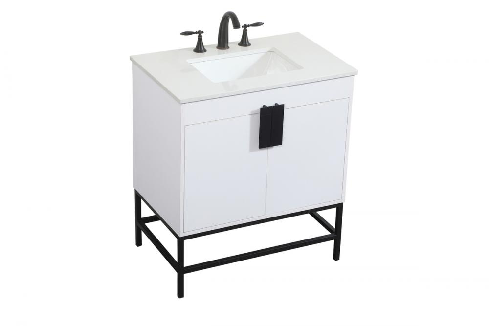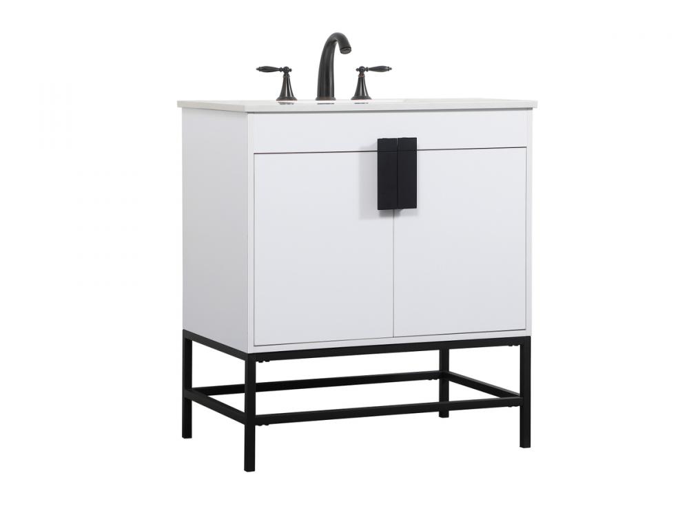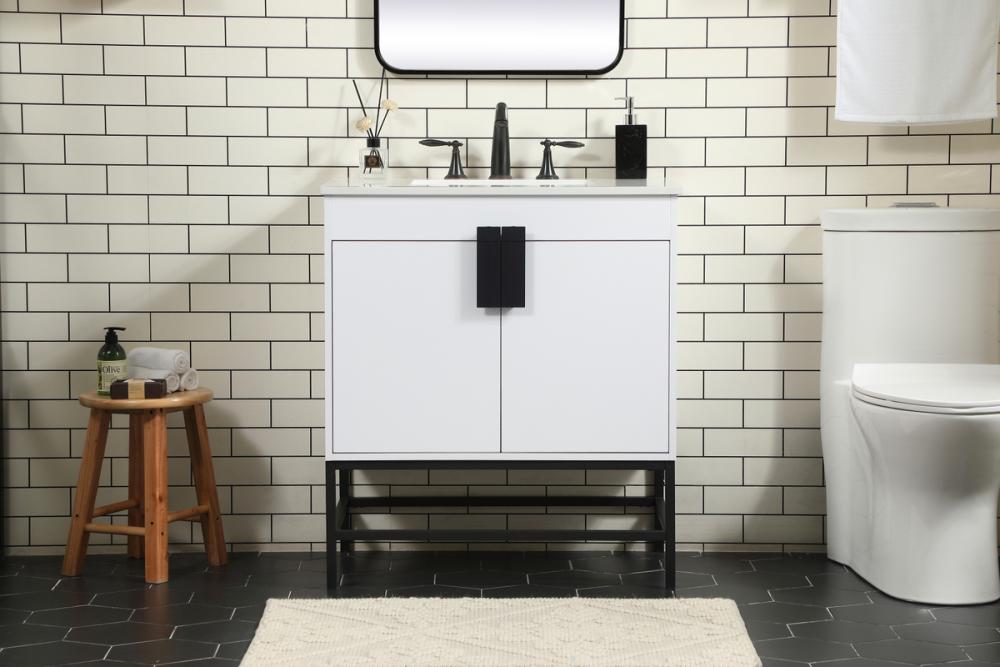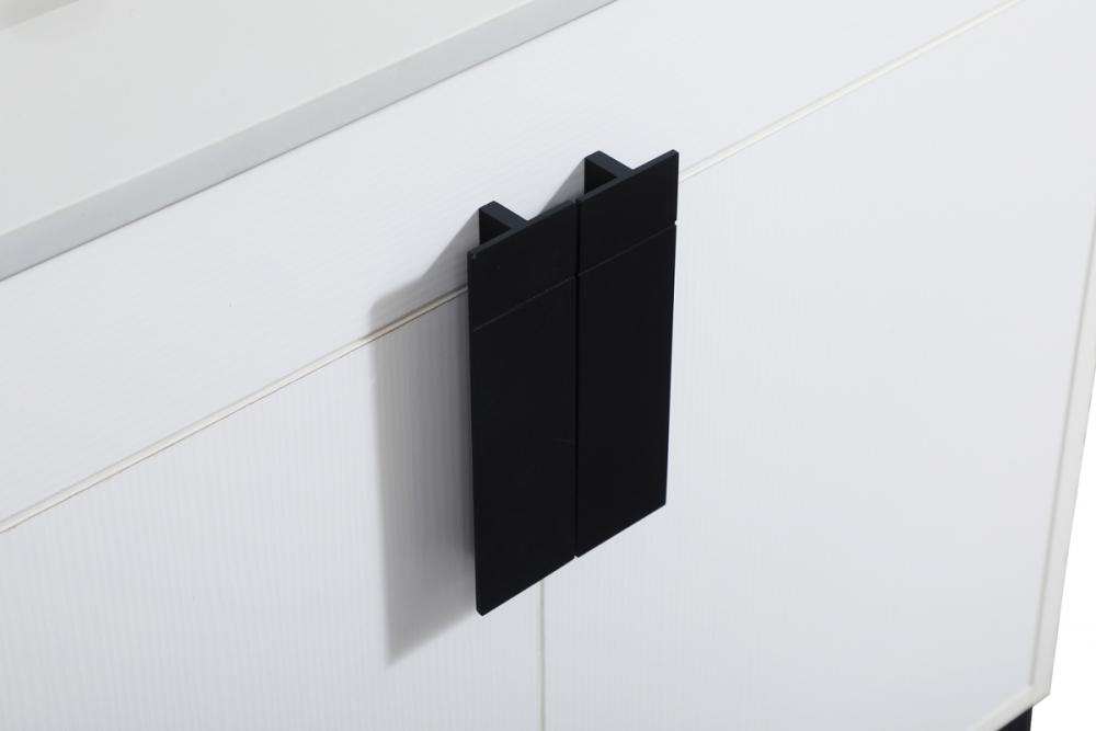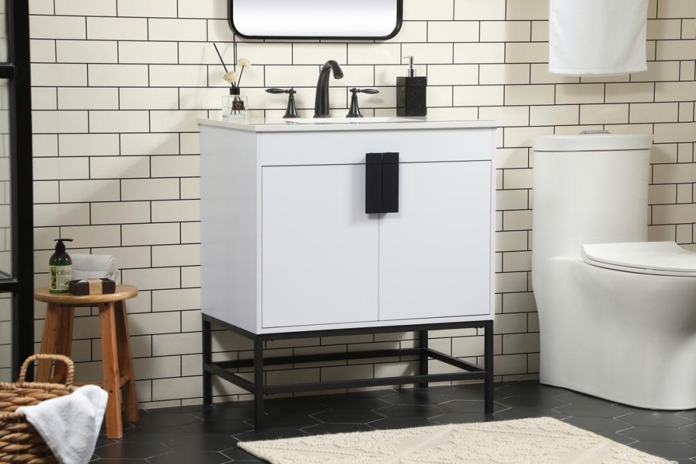 This vanity is a sleek-looking piece of bathroom furniture that is easy to incorporate into your design scheme. The cabinet features a smooth door panel with an oversized steel handle and soft close hinges provide ample room for accessories. Constructed of engineered wood, the powder-coated metal rod legs are an urban industrial look that we love. Minor assembly of the metal legs needed to get this vanity up and running.