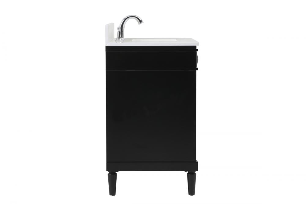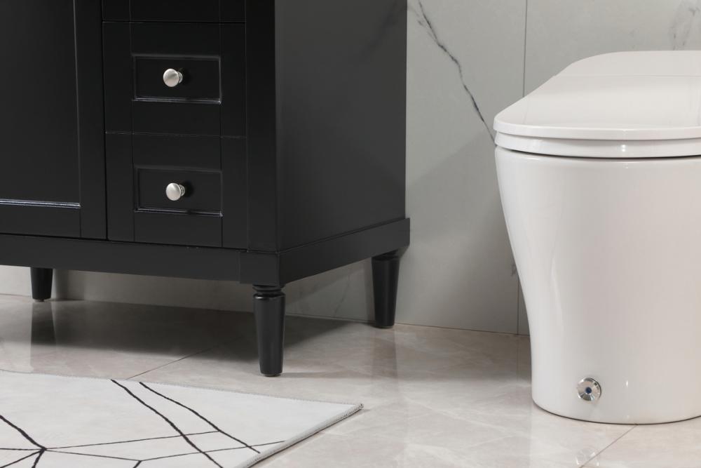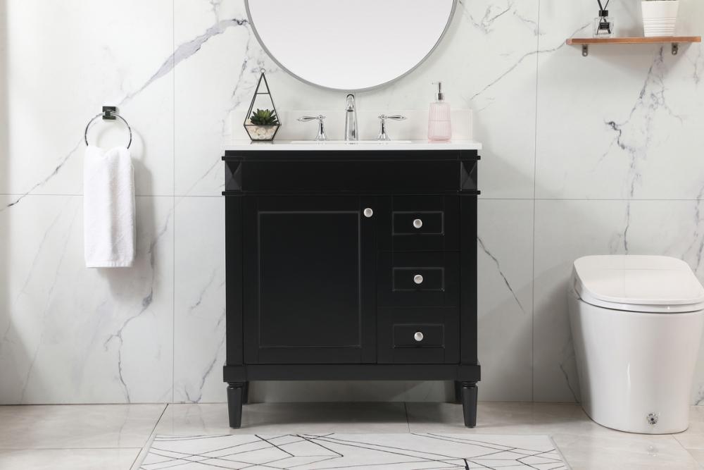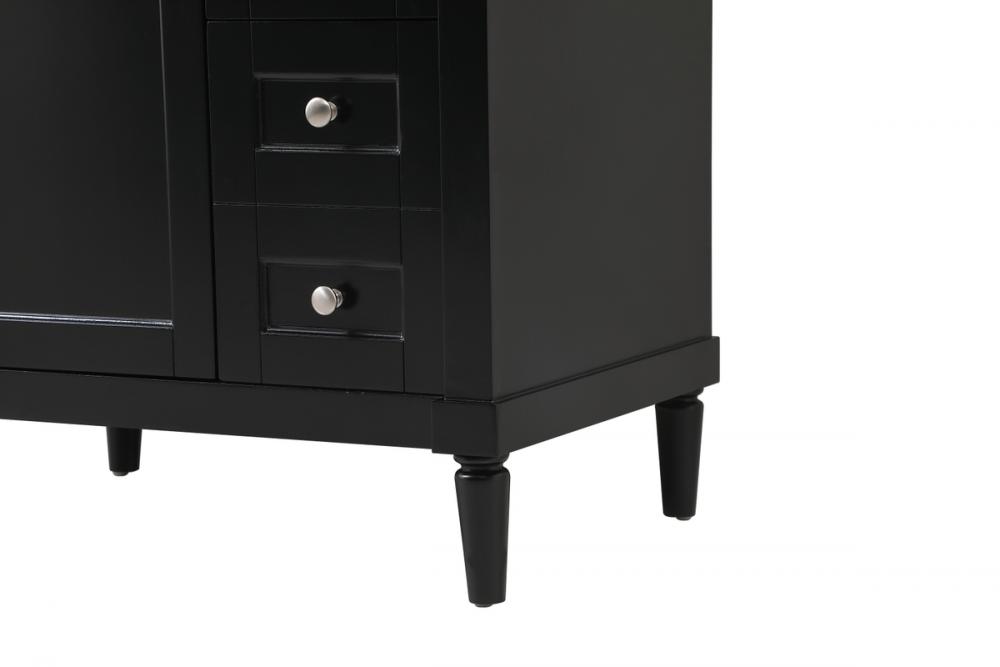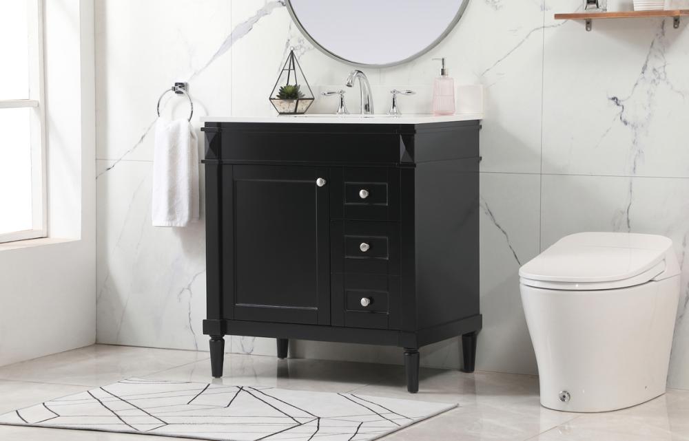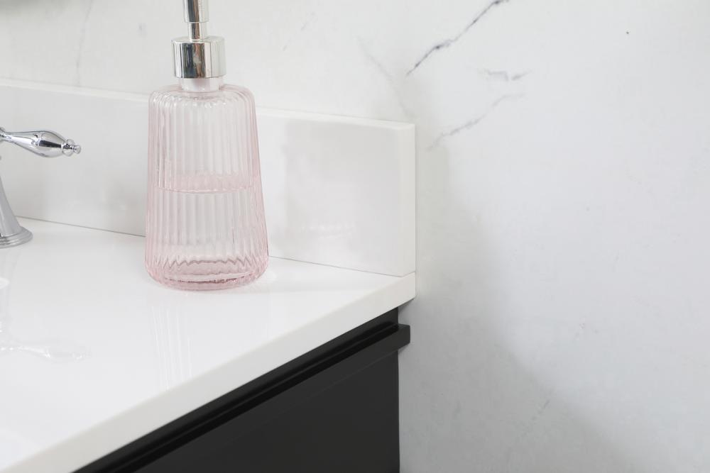 This transitional vanity is a beautiful piece of bathroom furniture will look amazing in your design scheme. The cabinet features a shaker style smooth door panel with simple round knobs and soft close hinges provide ample room for accessories. Packed with multiple side drawers with soft close glides for added comfort and full access to bath supplies. Convenient deep drawer stores all of your tall bath essentials. Constructed of engineered wood and solid wood legs with hand painted finish. The durable engineered marble countertop is a versatile material in an ivory white finish. Minor assembly of the legs needed to get this vanity up and running. Comes with a matching backsplash to complete the look and protects your wall.