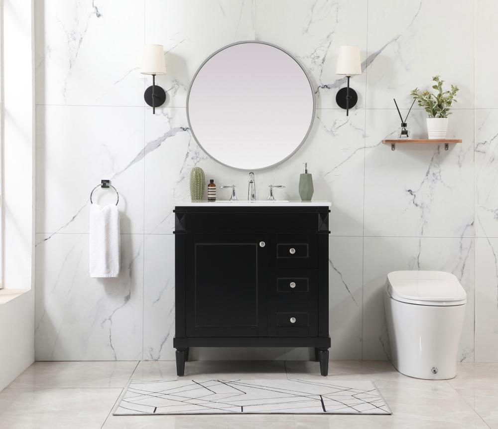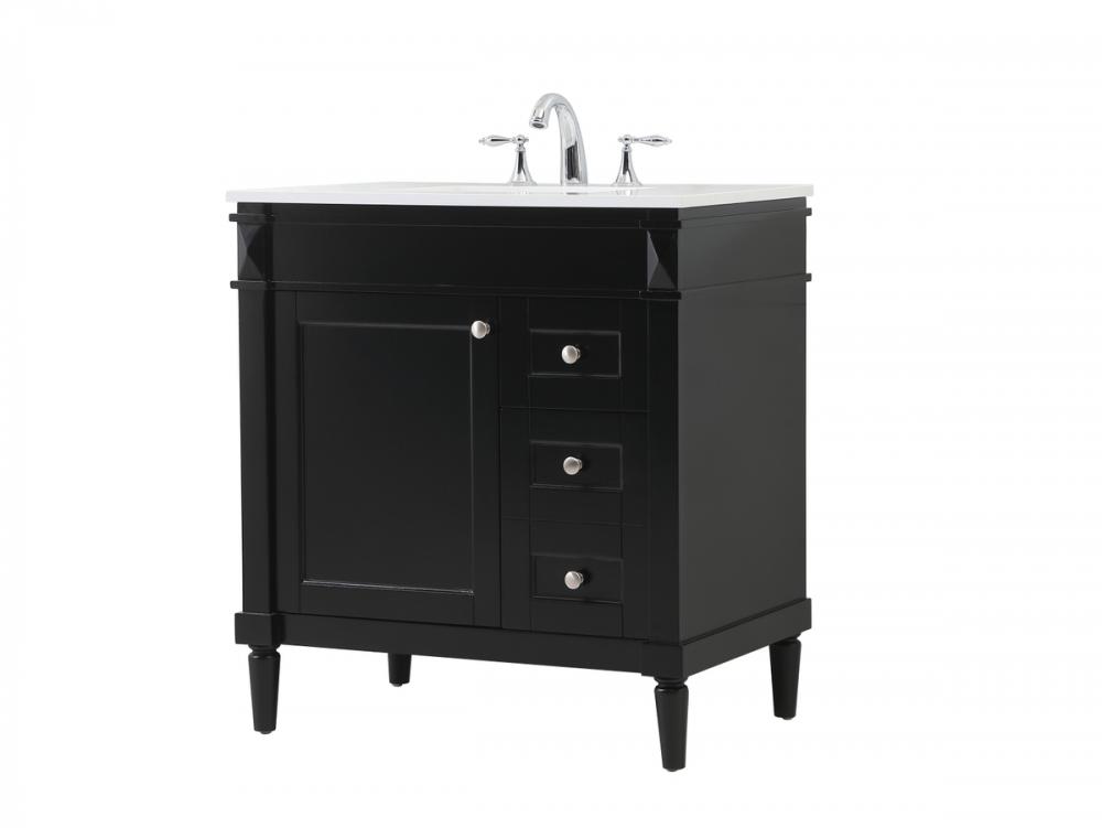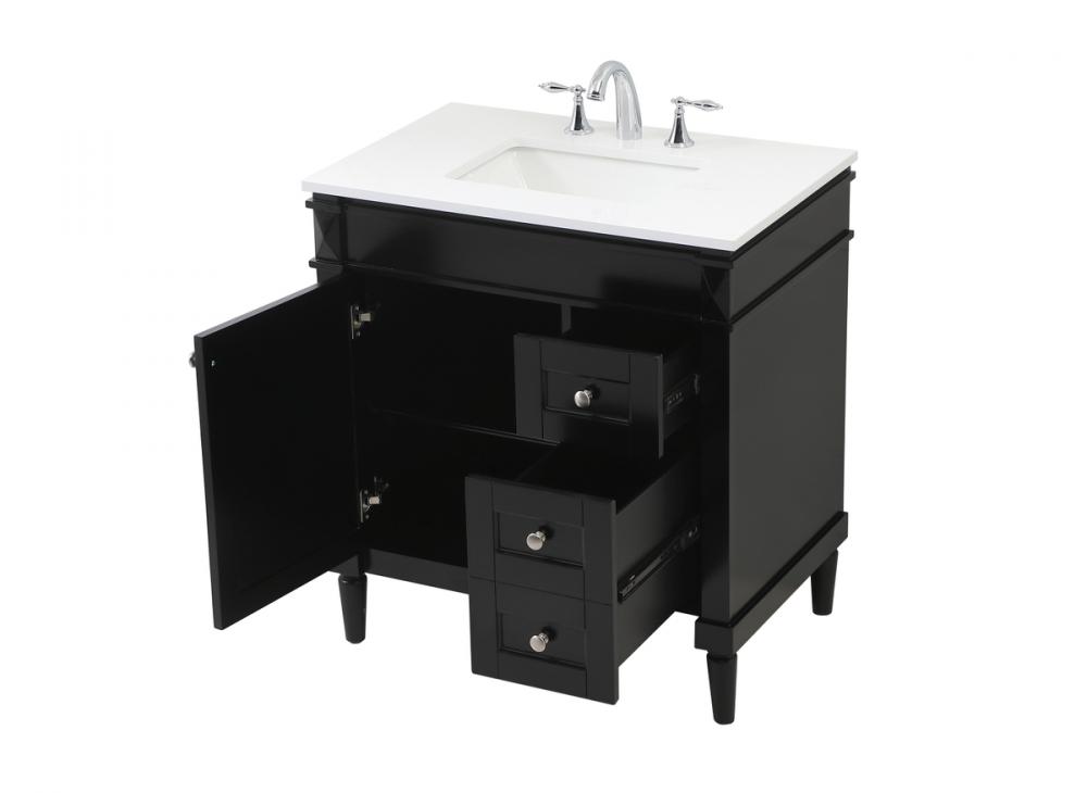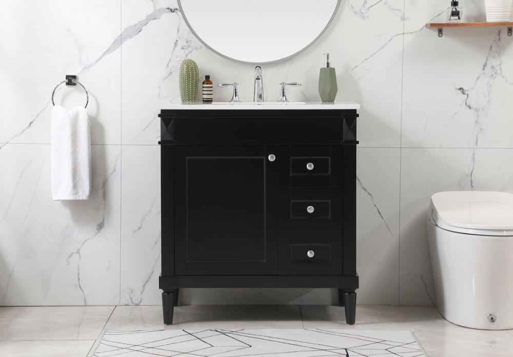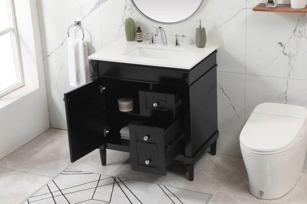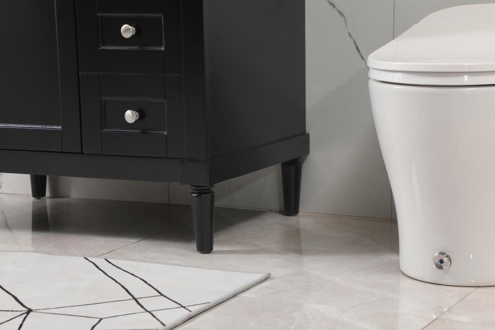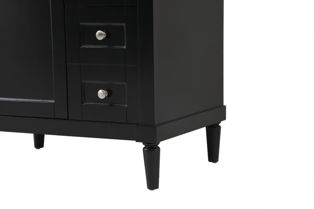This transitional vanity is a beautiful piece of bathroom furniture will look amazing in your design scheme. The cabinet features a shaker style smooth door panel with simple round knobs and soft close hinges provide ample room for accessories. Packed with multiple side drawers with soft close glides for added comfort and full access to bath supplies. Convenient deep drawer stores all of your tall bath essentials. Constructed of engineered wood and solid wood legs with hand painted finish. The durable engineered marble countertop is a versatile material in an ivory white finish. Minor assembly of the legs needed to get this vanity up and running.