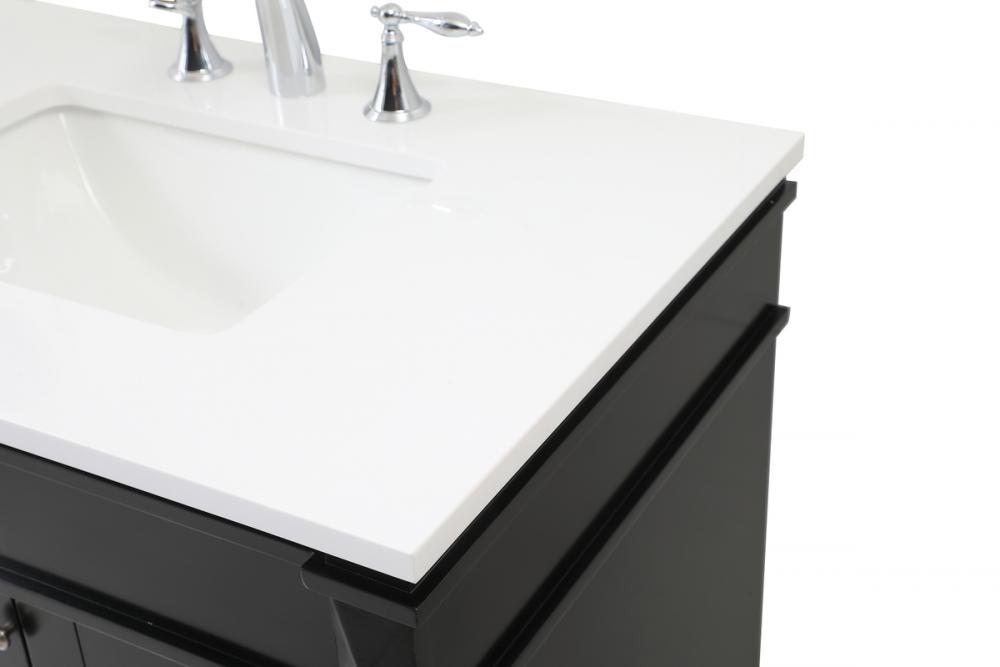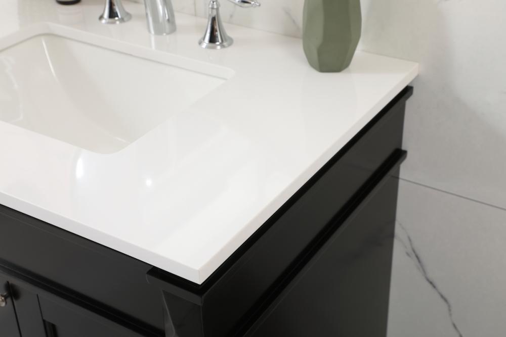 Crafted with durable engineered marble top in ivory white finish and vanity base is hand painted