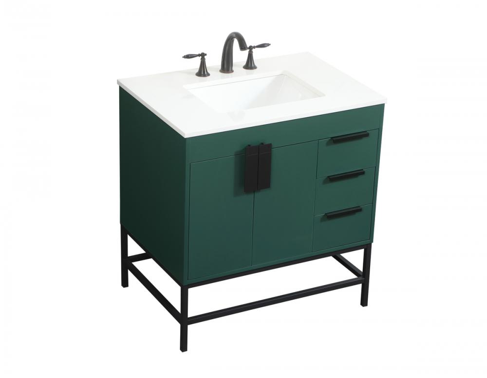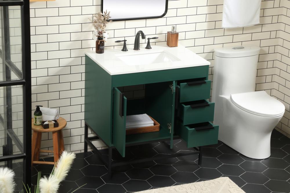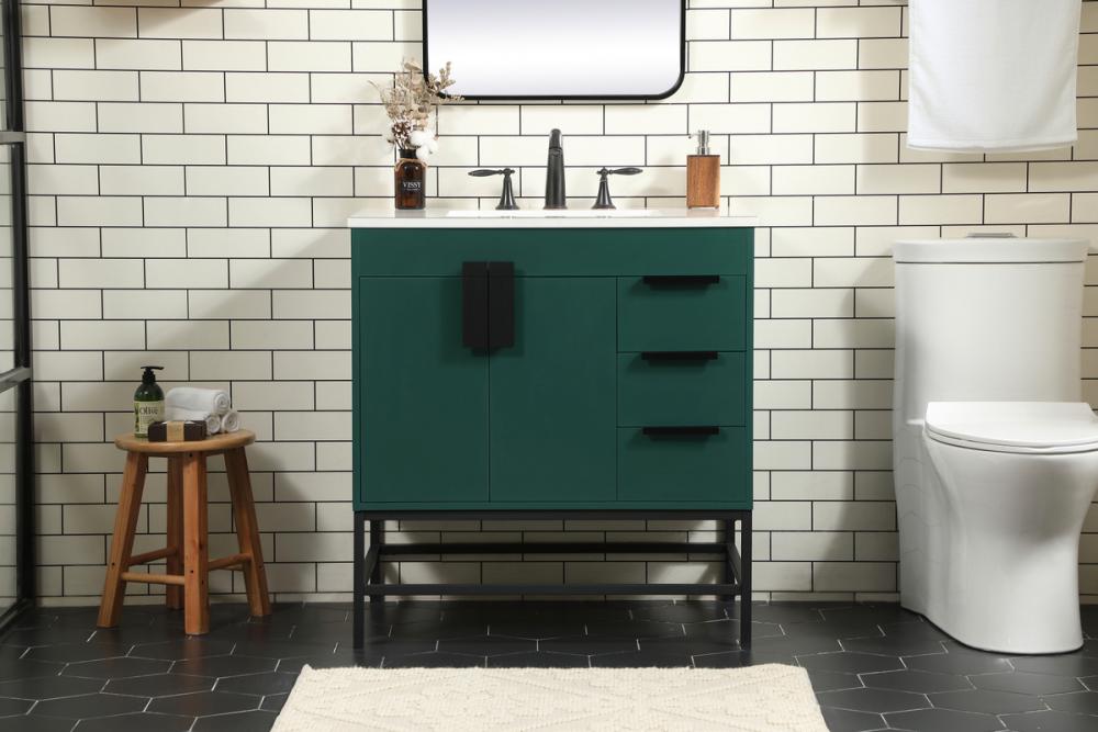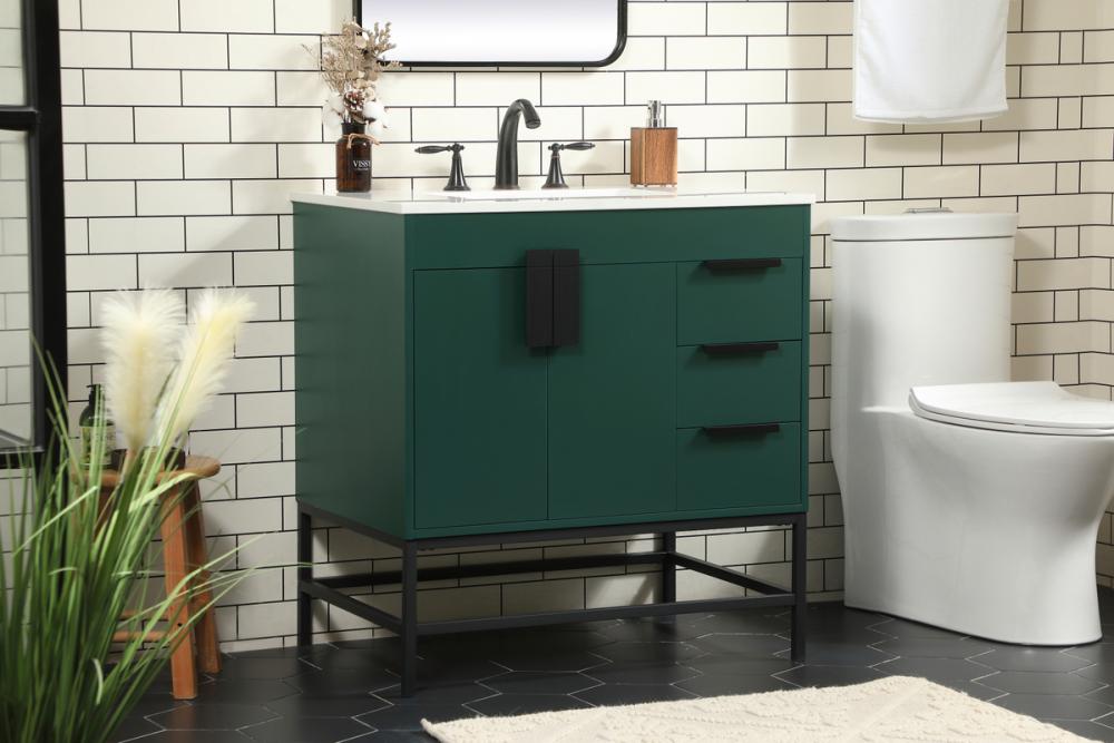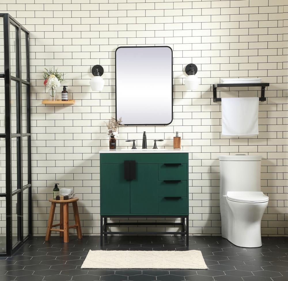 This vanity is a sleek-looking piece of bathroom furniture that is easy to incorporate into your design scheme. The cabinet features a smooth door panel with an oversized steel handle and soft close hinges provide ample room for accessories. Constructed of engineered wood, the powder-coated metal rod legs are an urban industrial look that we love. Minor assembly of the metal legs needed to get this vanity up and running.