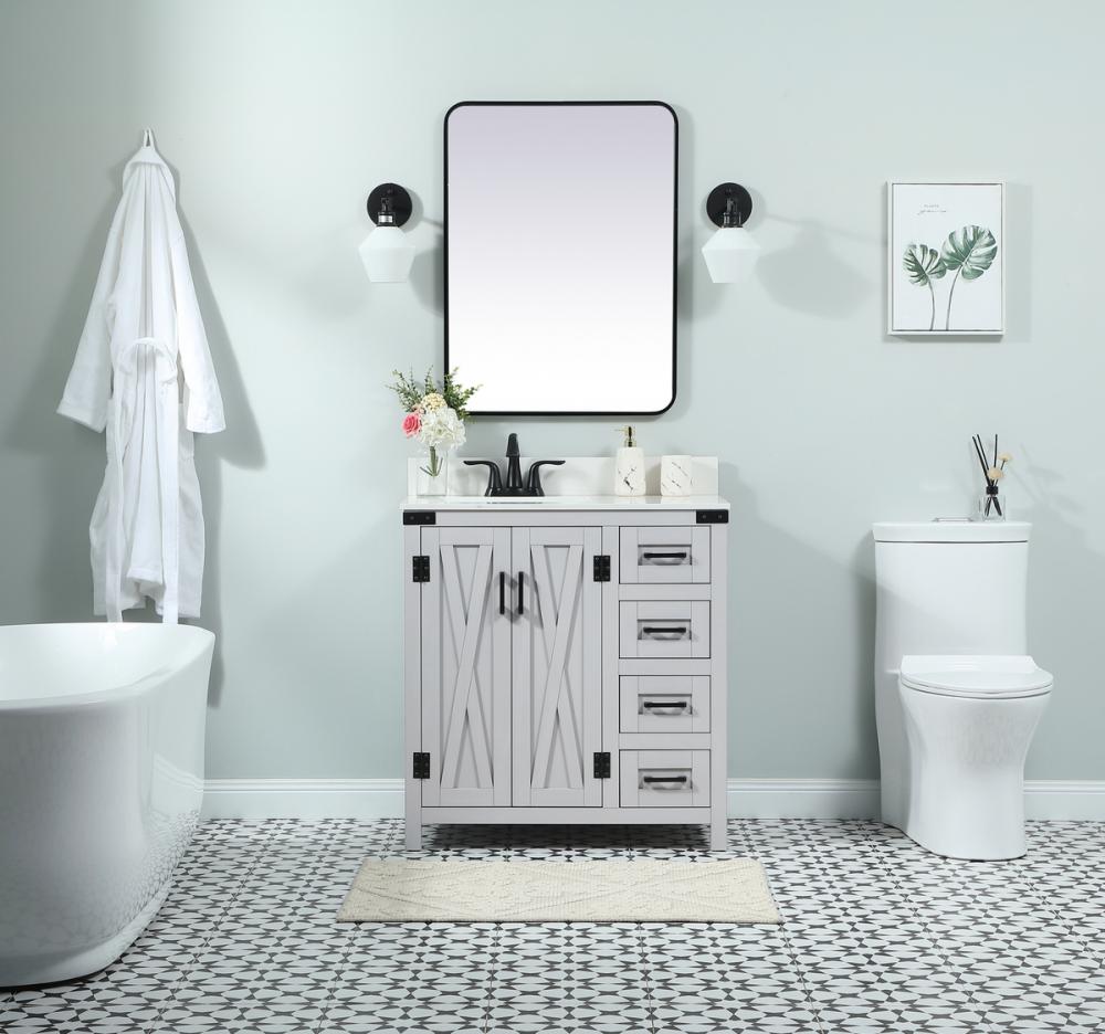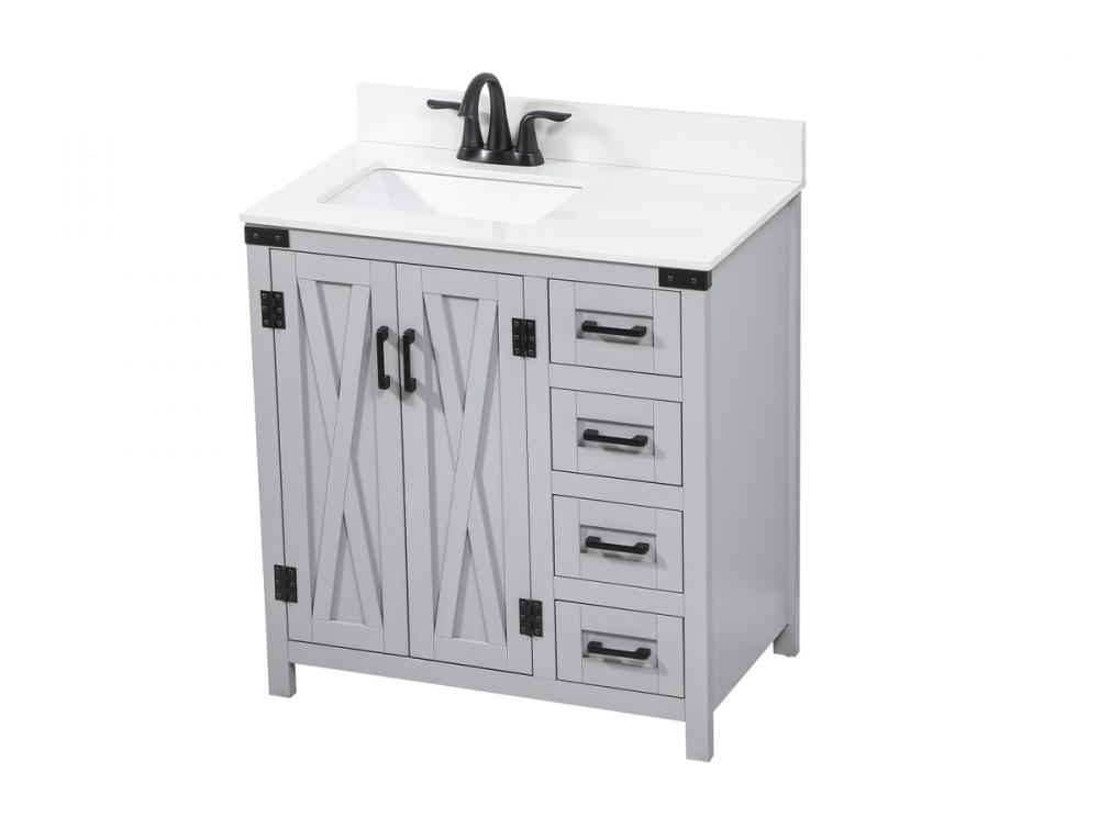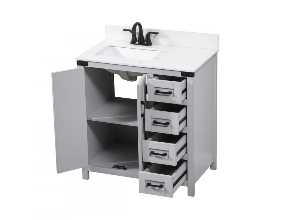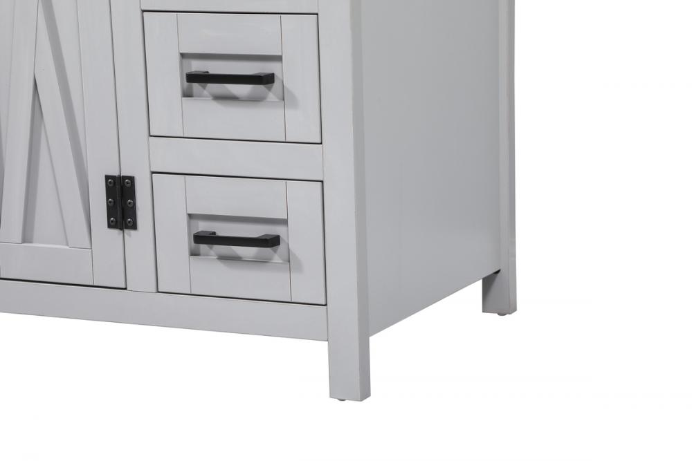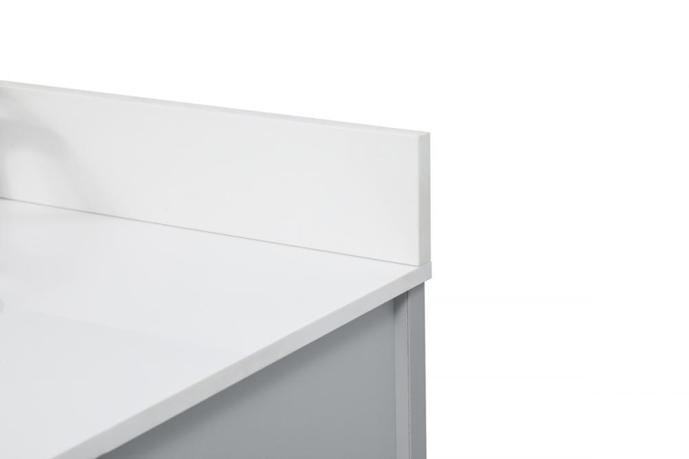 Reminiscent of barn doors, the two door cabinet and four drawers adds both stylistic charm and function with its plethora of storage options for all your bathroom essentials. Whether for your bathroom or the guests', everyone will marvel at its classic look for traditional and farmhouse aesthetics. A slab of engineered marble rounds out the piece up top, as well as the porcelain under mount sink and predrilled faucet holes. This vanity arrives fully assembled. Comes with a matching backsplash to complete the look and protects your wall.