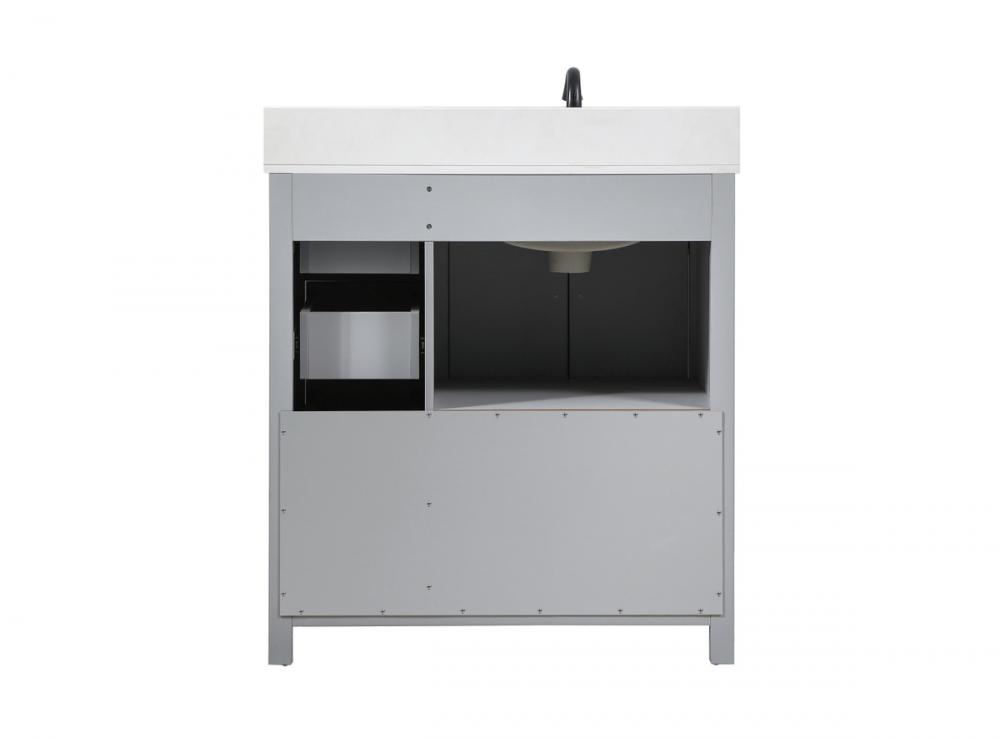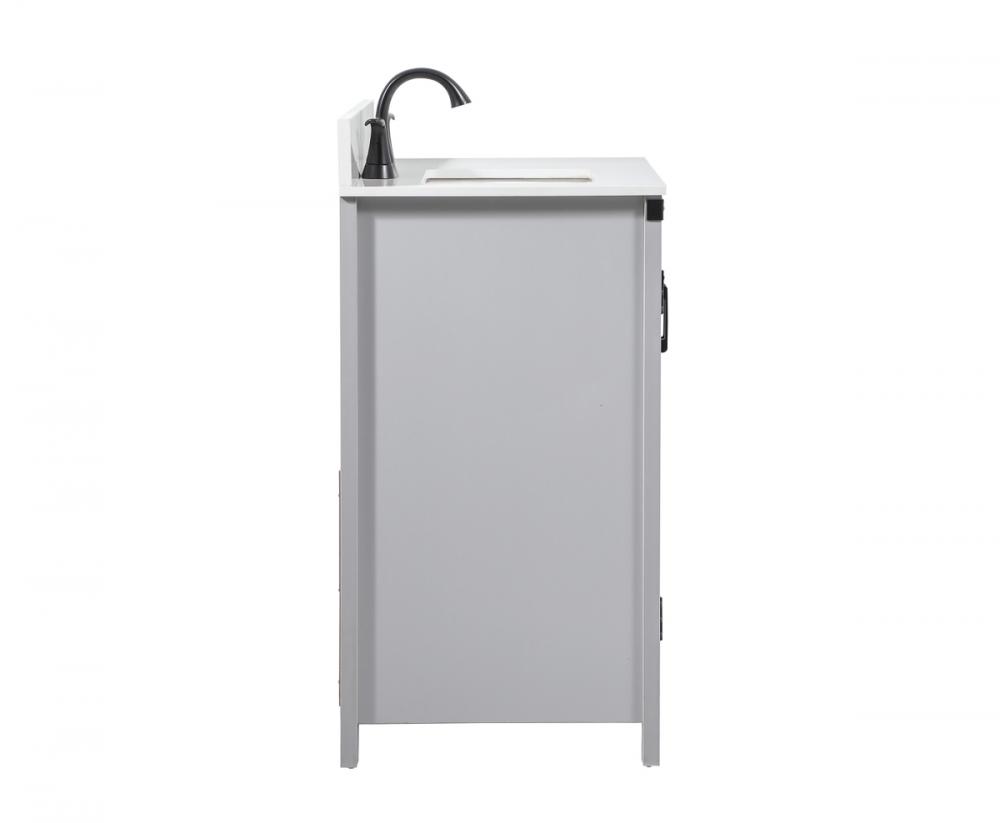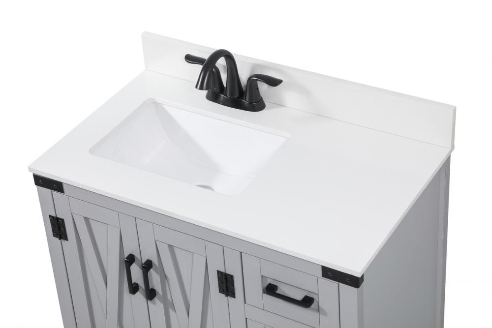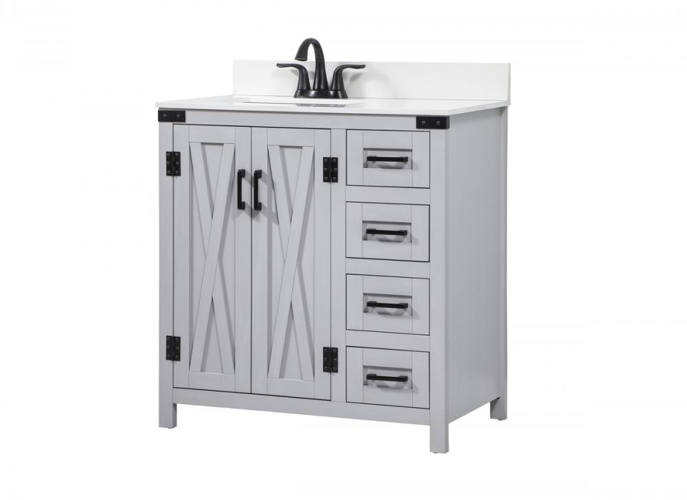 Reminiscent of barn doors, the two door cabinet and four drawers adds both stylistic charm and function with its plethora of storage options for all your bathroom essentials. Whether for your bathroom or the guests', everyone will marvel at its classic look for traditional and farmhouse aesthetics. A slab of engineered marble rounds out the piece up top, as well as the porcelain under mount sink and predrilled faucet holes. This vanity arrives fully assembled. Comes with a matching backsplash to complete the look and protects your wall.
