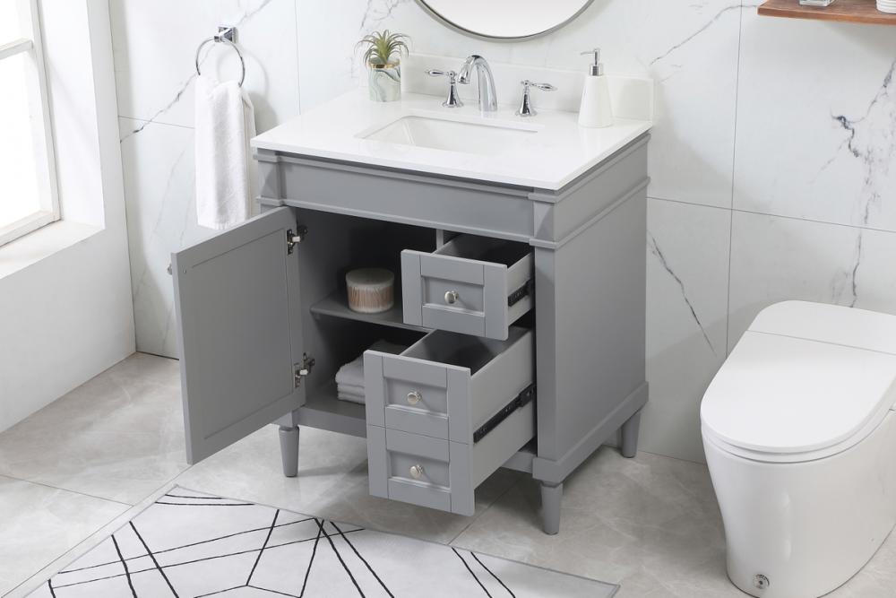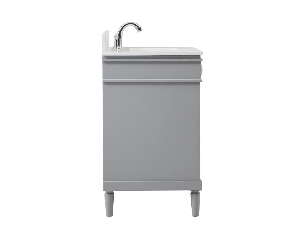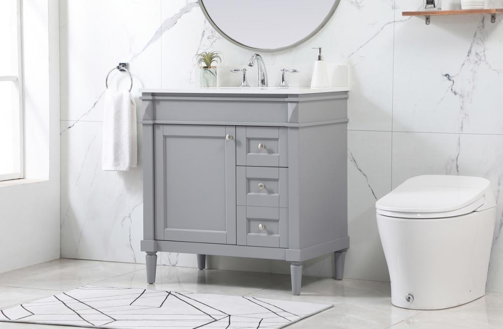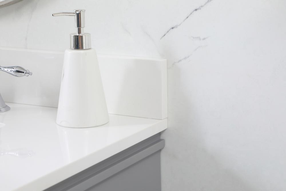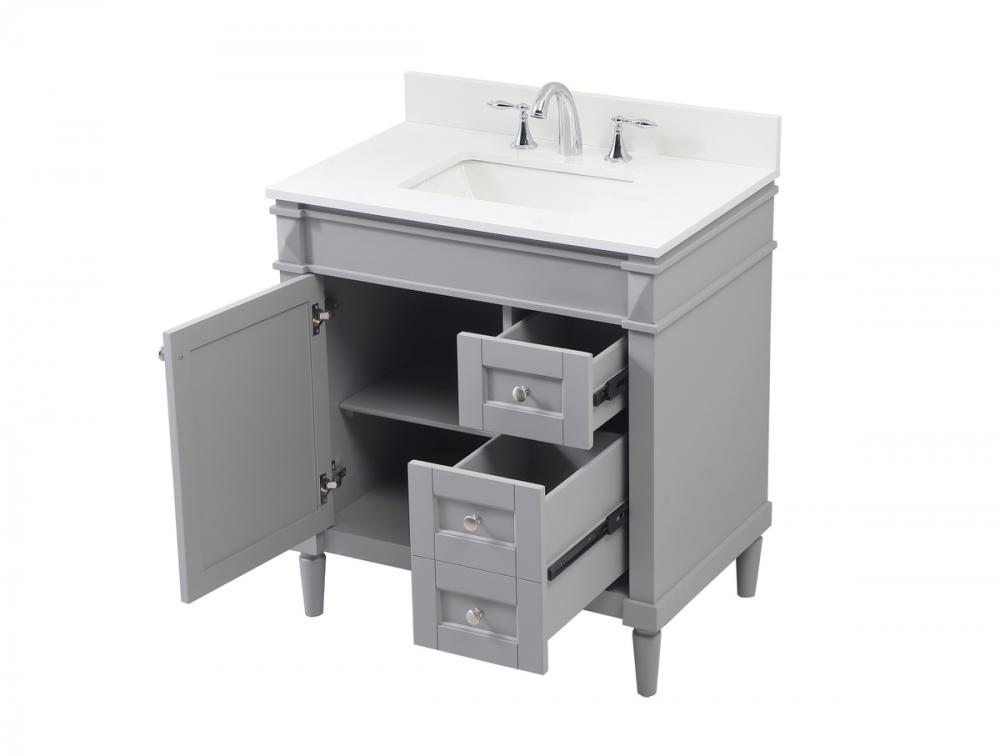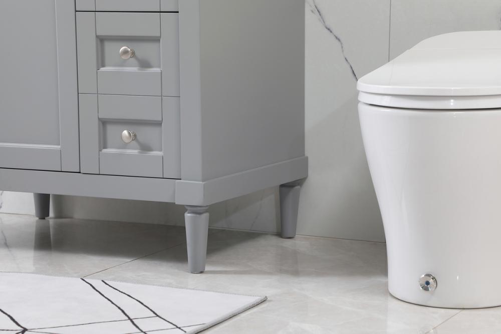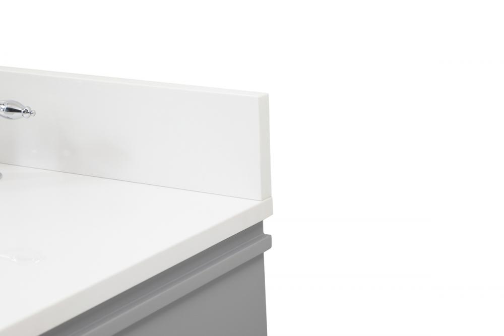 This transitional vanity is a beautiful piece of bathroom furniture will look amazing in your design scheme. The cabinet features a shaker style smooth door panel with simple round knobs and soft close hinges provide ample room for accessories. Packed with multiple side drawers with soft close glides for added comfort and full access to bath supplies. Convenient deep drawer stores all of your tall bath essentials. Constructed of engineered wood and solid wood legs with hand painted finish. The durable engineered marble countertop is a versatile material in an ivory white finish. Minor assembly of the legs needed to get this vanity up and running. Comes with a matching backsplash to complete the look and protects your wall.